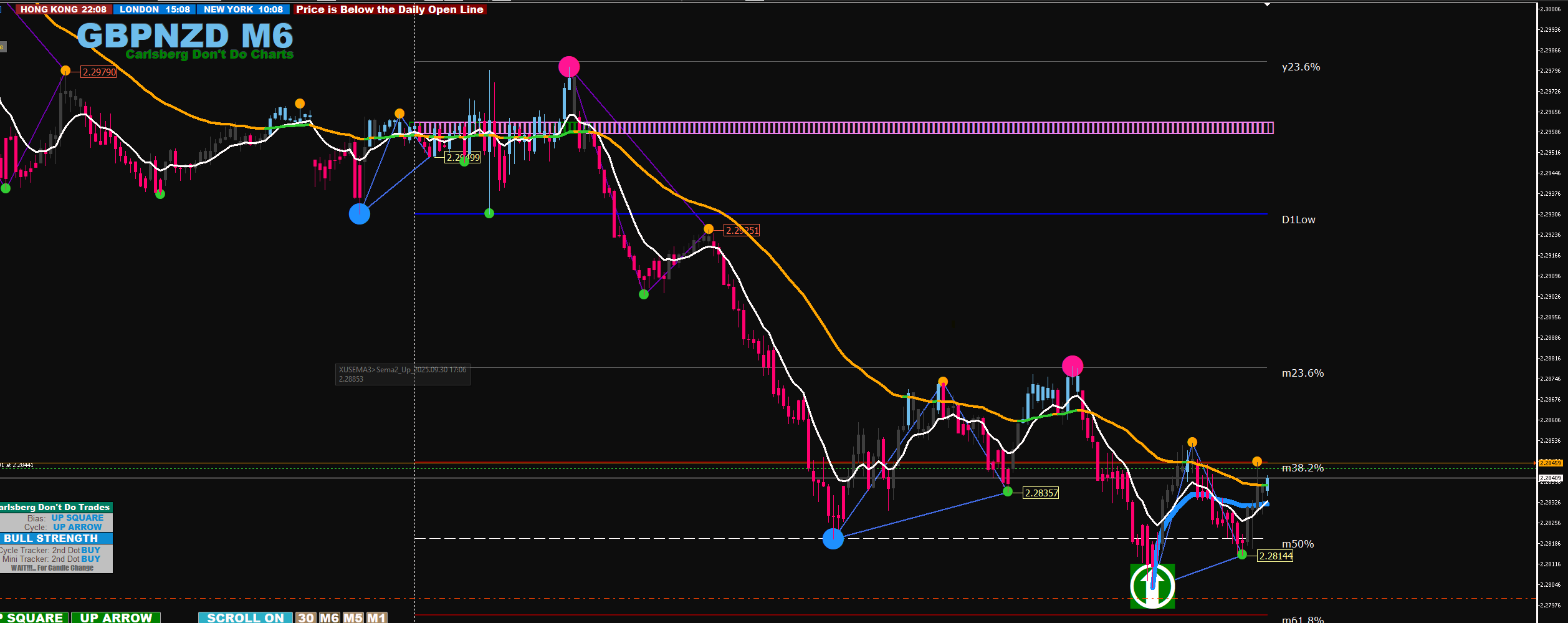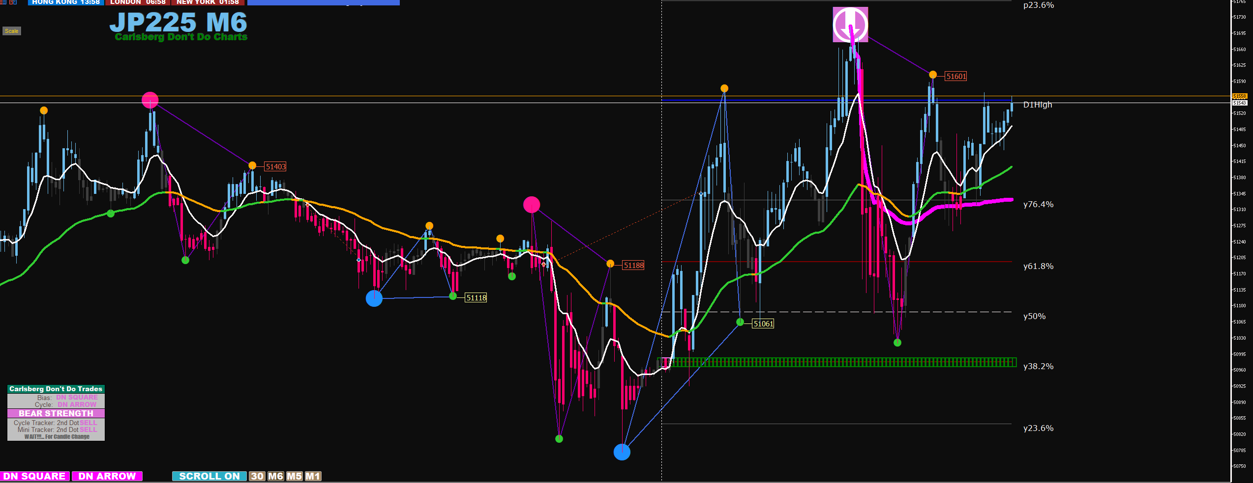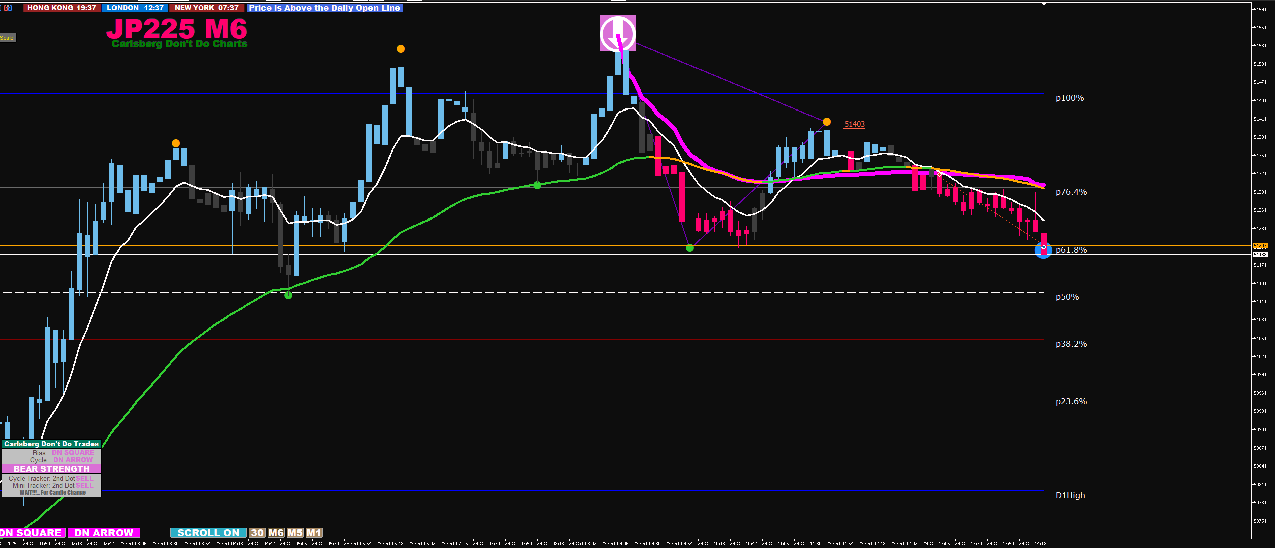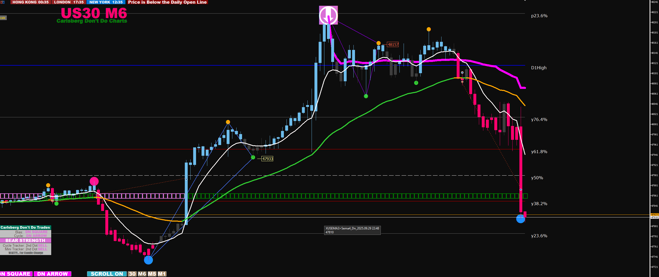 30M arrow align with 6M arrow + 2 big dots exit at arrow on 6m stop loss below second big dot