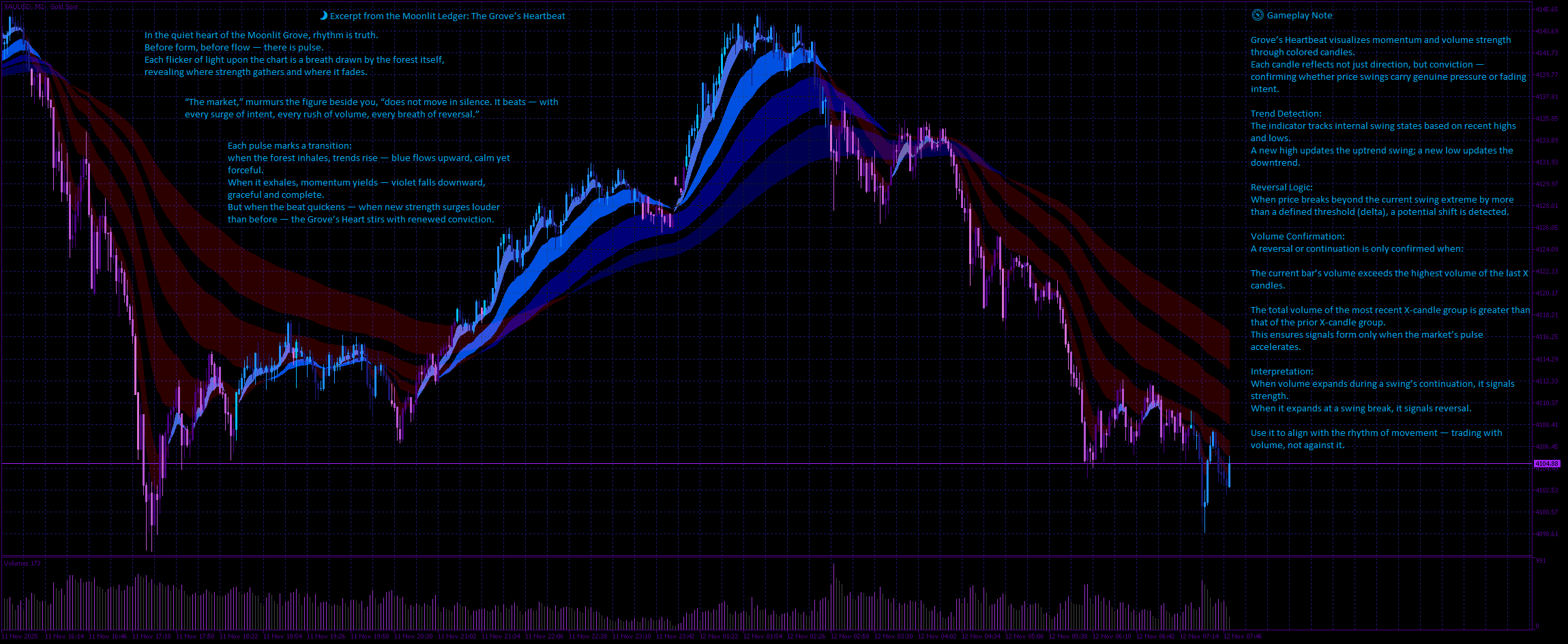 The Heartbeat of the Grove was faint at first — a rhythm pulsing beneath the quiet soil, syncing with each flicker of light between the branches. You followed it deeper, past the fallen stones and silver roots, until the air itself began to hum. The pulse wasn’t random; it spoke. Each beat, each vibration, carried the memory of a movement — price, volume, intent.