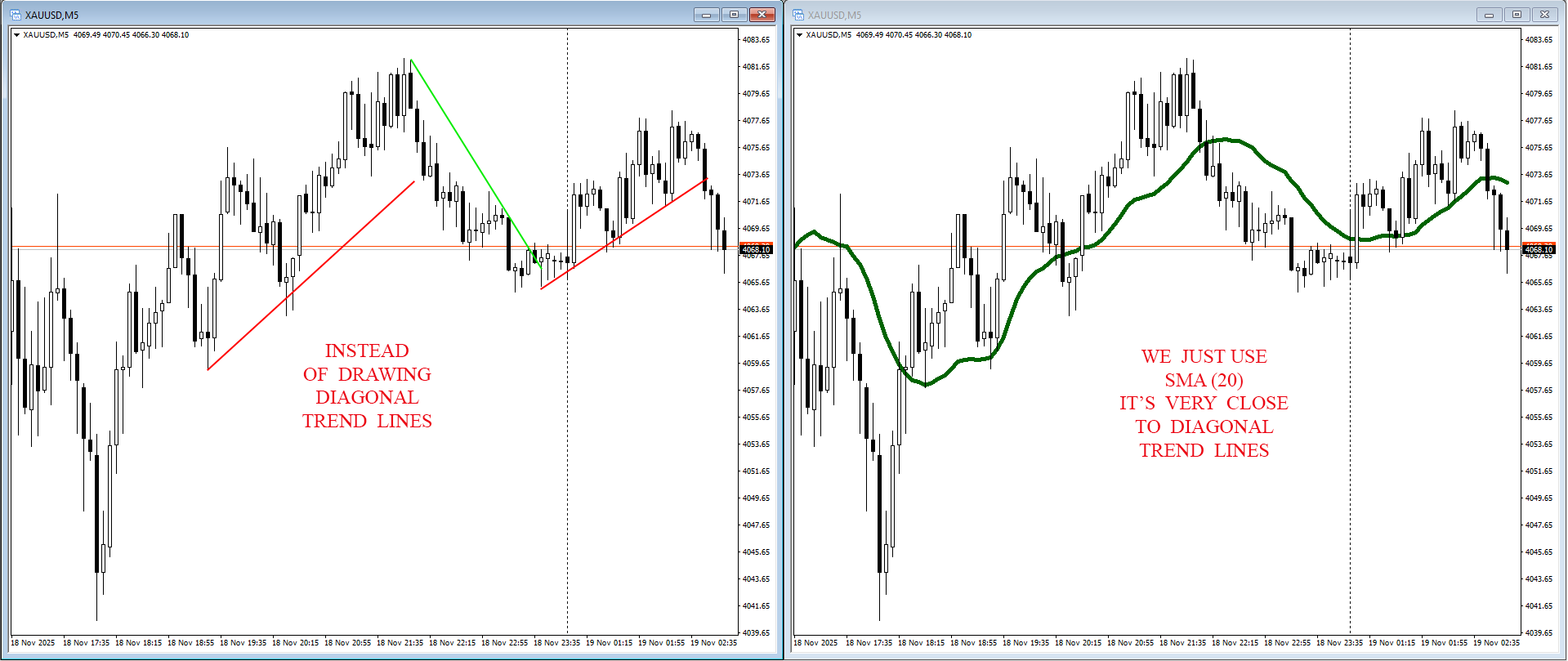 Instead of drawing diagonal trend lines,
