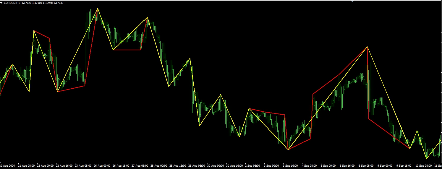 - And yellow line is updated every time there is a peak (or reversal) of the red line