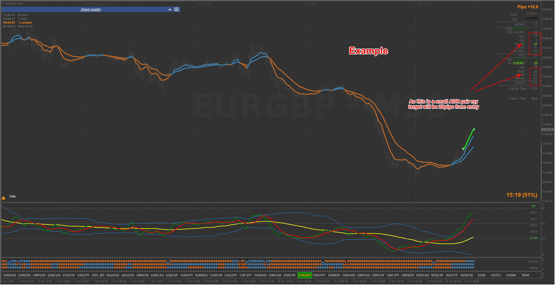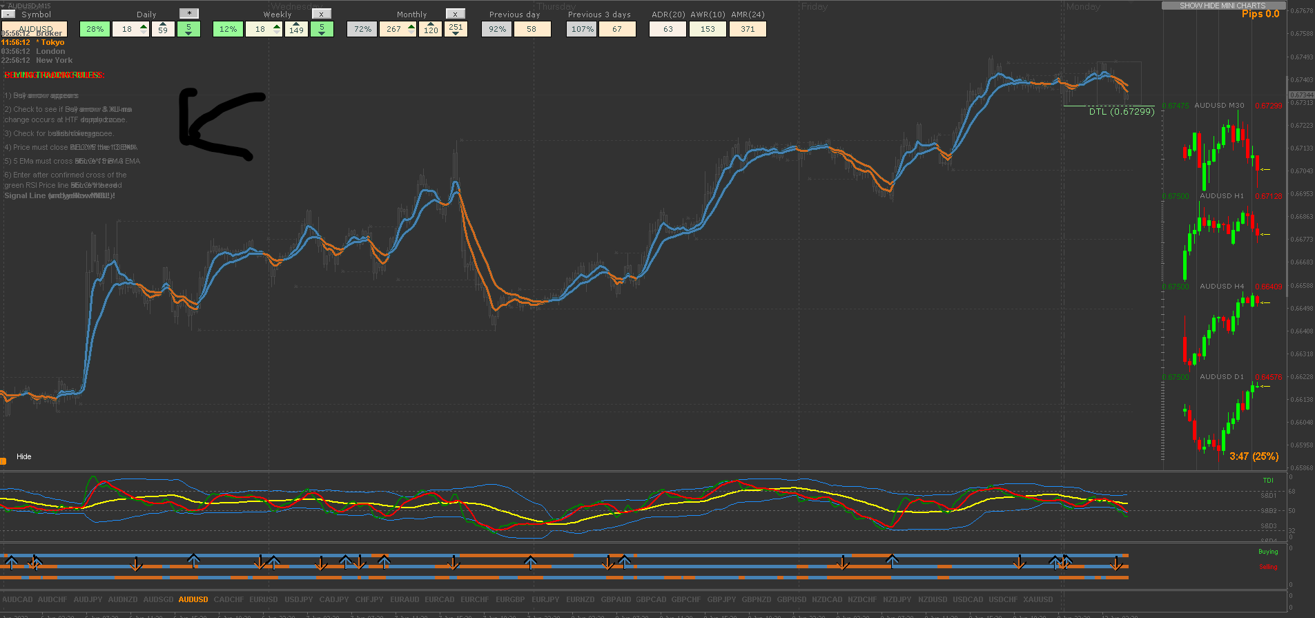 4) Exit at the opposing arrow (not always the best option as an opposing arrow could just be a small pullback before trend continues again)