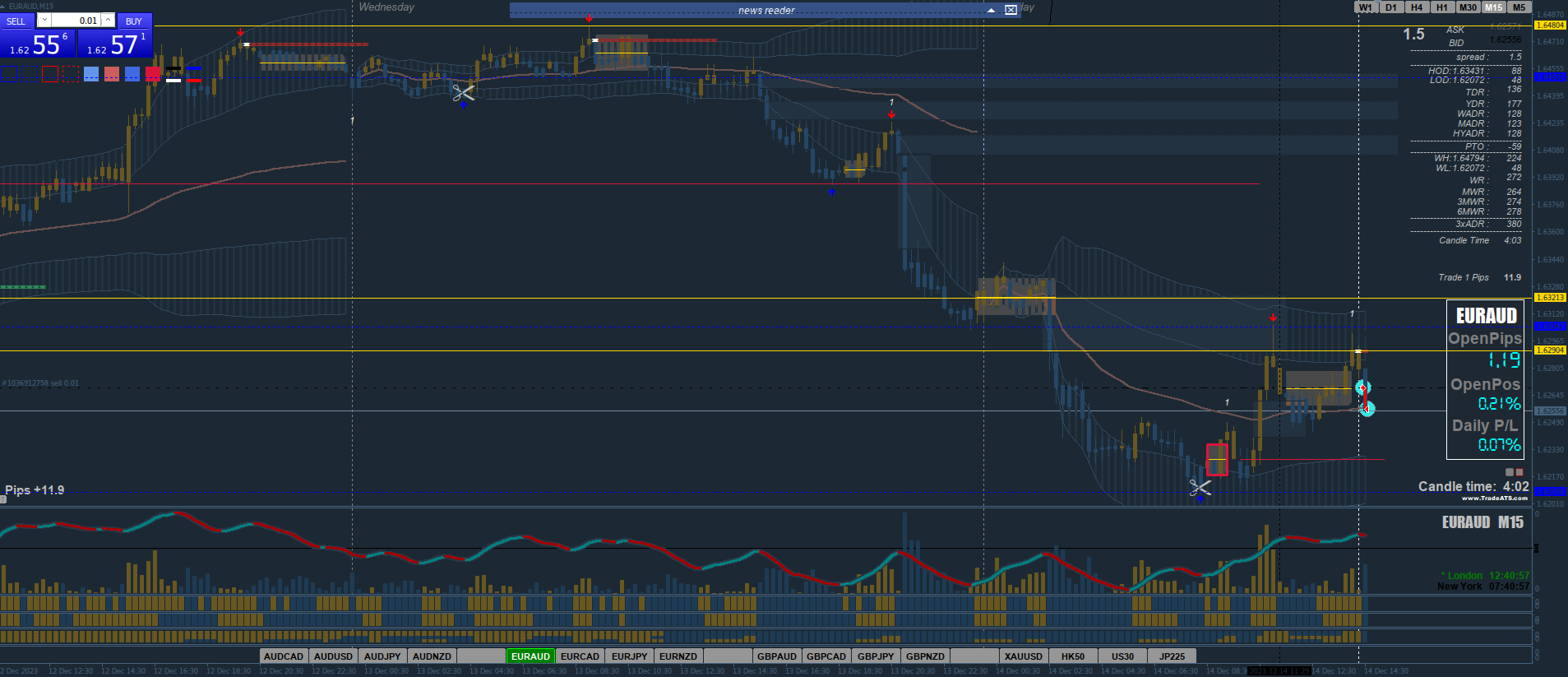 In this screenshot you can see that I had a good entry that met all the conditions. (DAX 1MIN) Then it went for another low.
