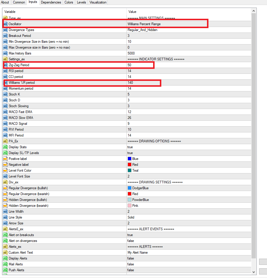 Change the settings as per the snip. Pay attention to zig zag period 50 and respective indicator period. Always 140. Stack all possible type of divergencies. Trade any TF with confidence. This divergence indie tagged all major reversals on Naz, US30 and Russel. I just gave you gold. Enjoy.