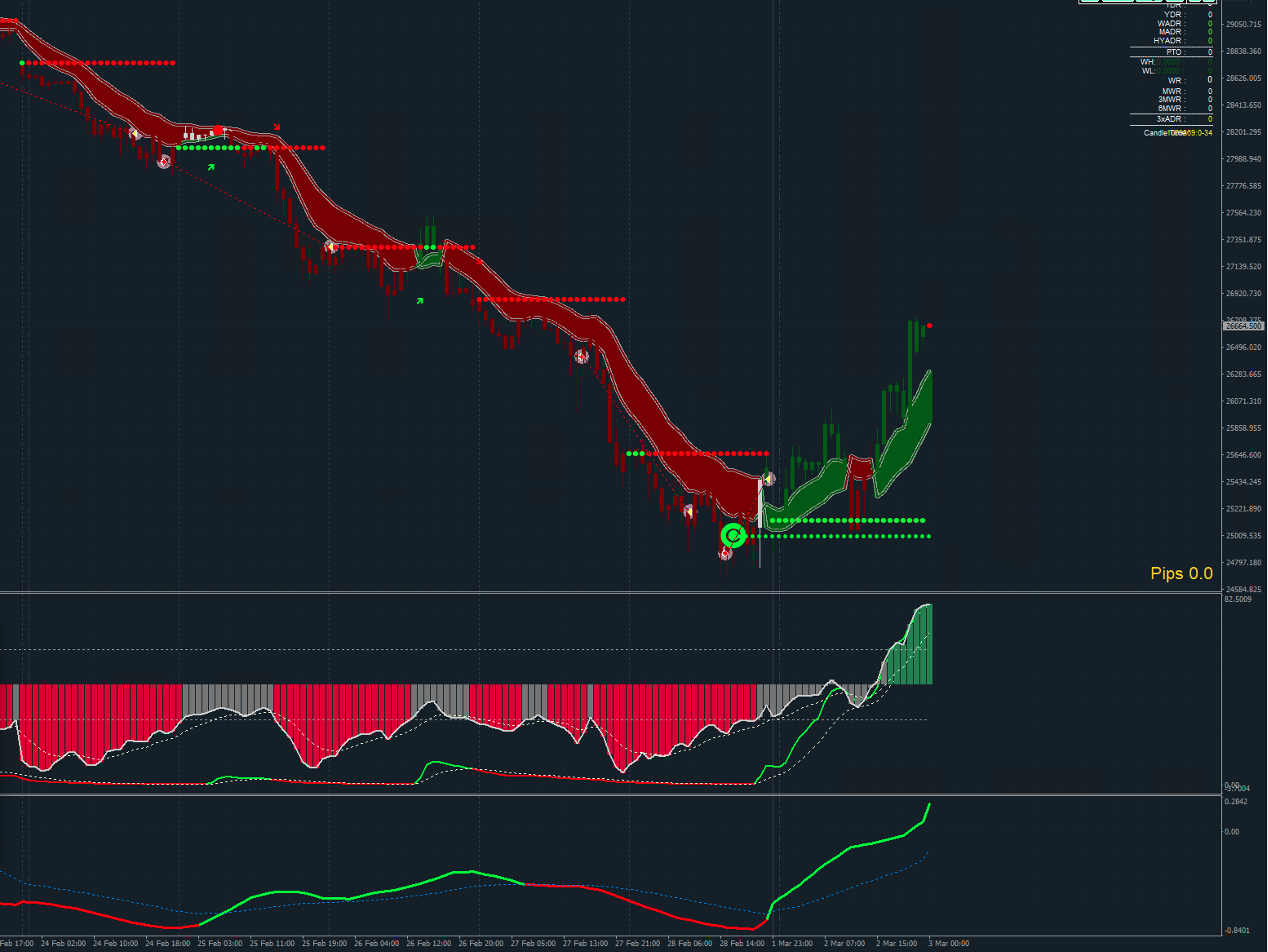 On the manual pictures its very easy on a past chart but in real time the green /red perimeter dots are coming later and sometimes dissapear. This is why I asking.