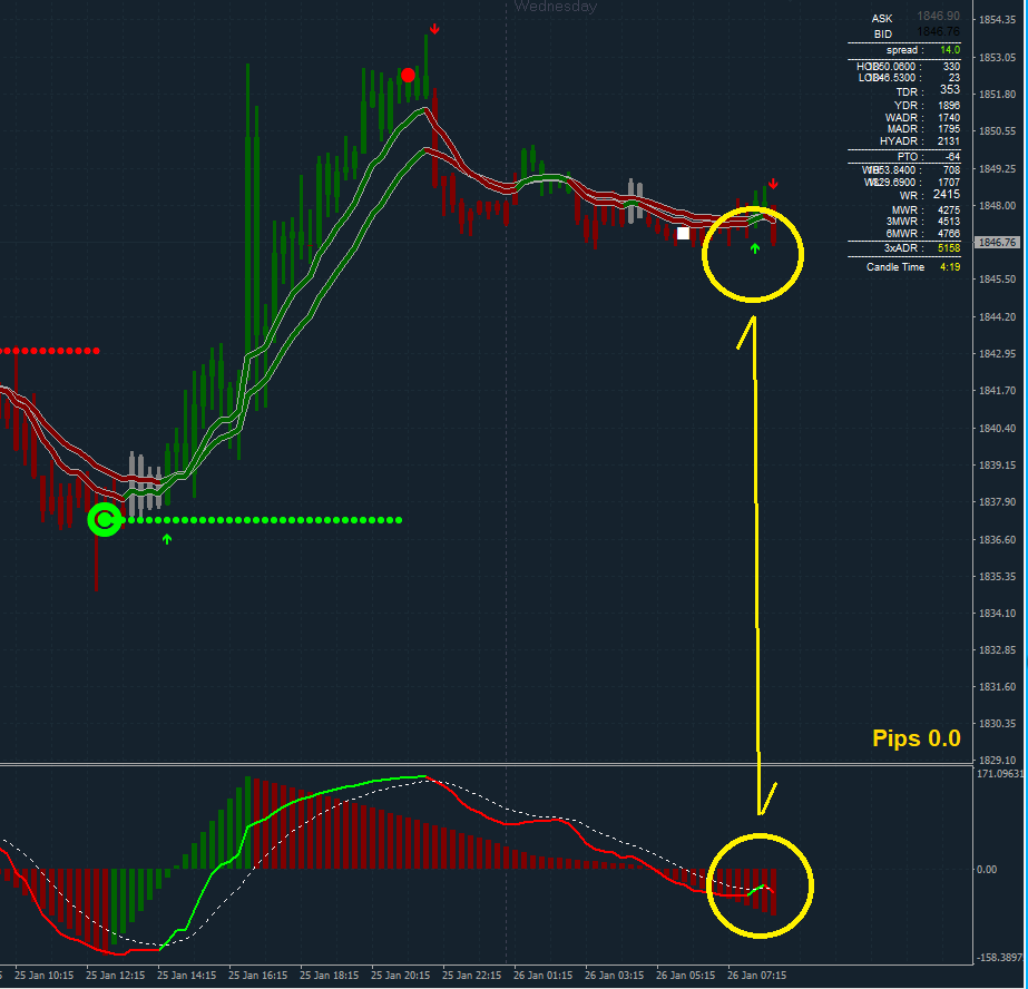 If you want to make this somewhat clearer you could use price action, for example the 4-bar-fractal method (I posted maybe a week ago in the "something interesting"-thread) because it gives you another hint that price may reverse.