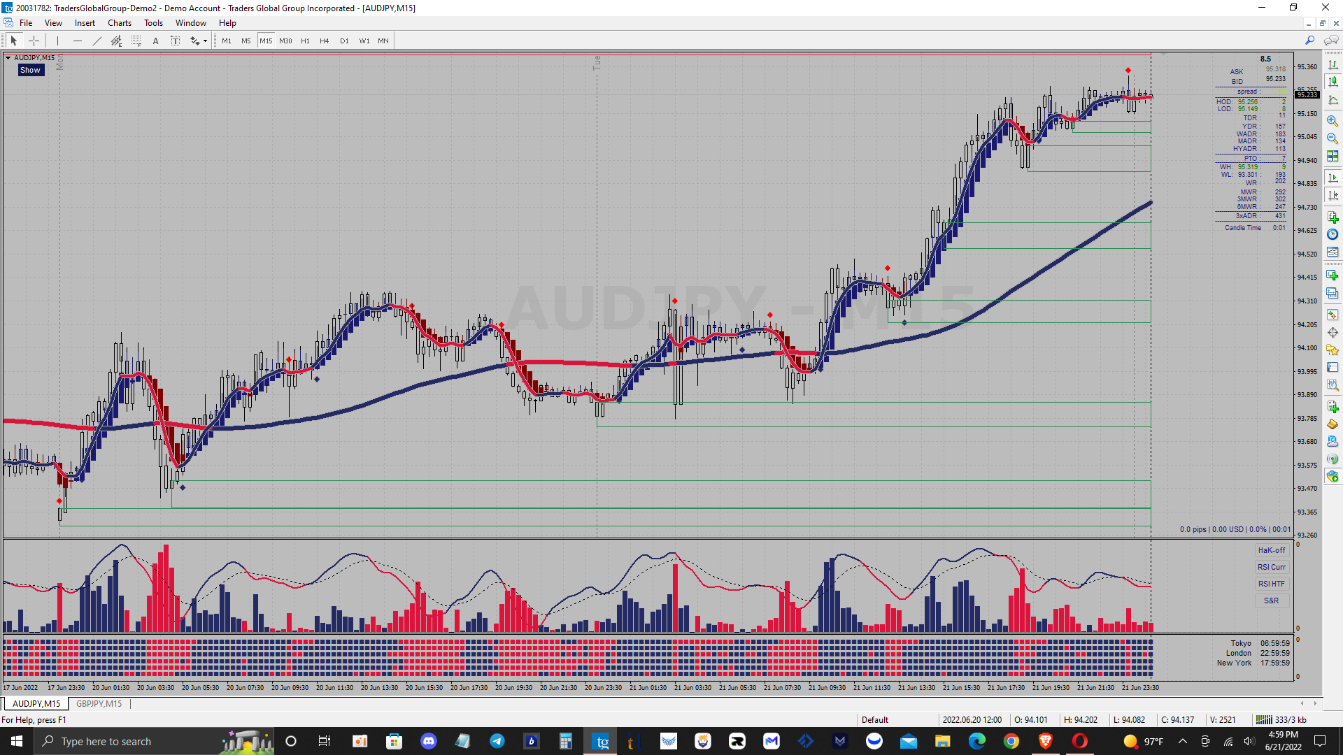 Lwma on a dayly t/f and envolopes are set to day and weekly t/f these are all bullish at present (could repaint as they are mtf) I am currently about 40 pips down a SL of 93 pip. Watching closely could close at any time if it does not change or let it run if I fall asleep
