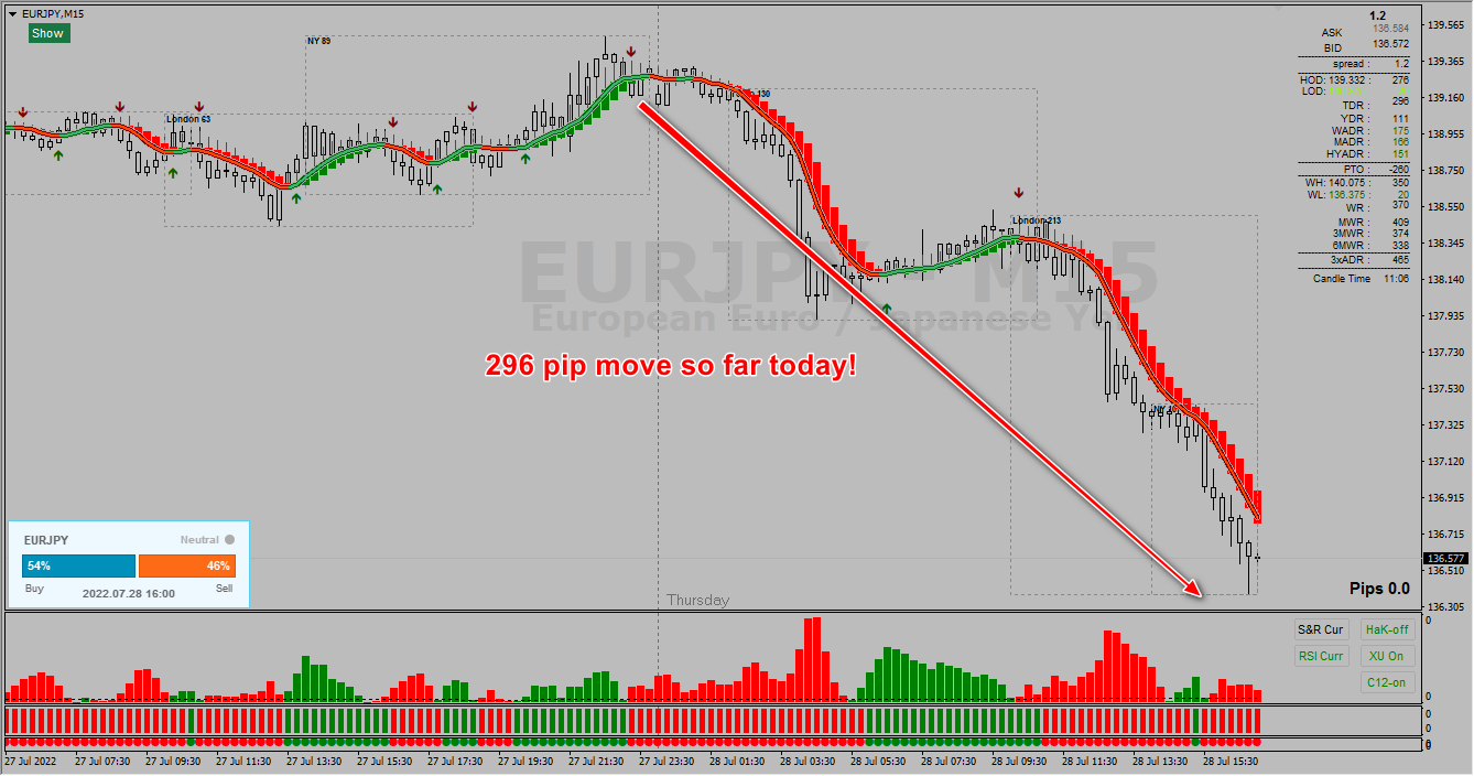 . Also, you will notice that there is a client sentiment indicator showing the retail trader's bias for that particular financial asset.