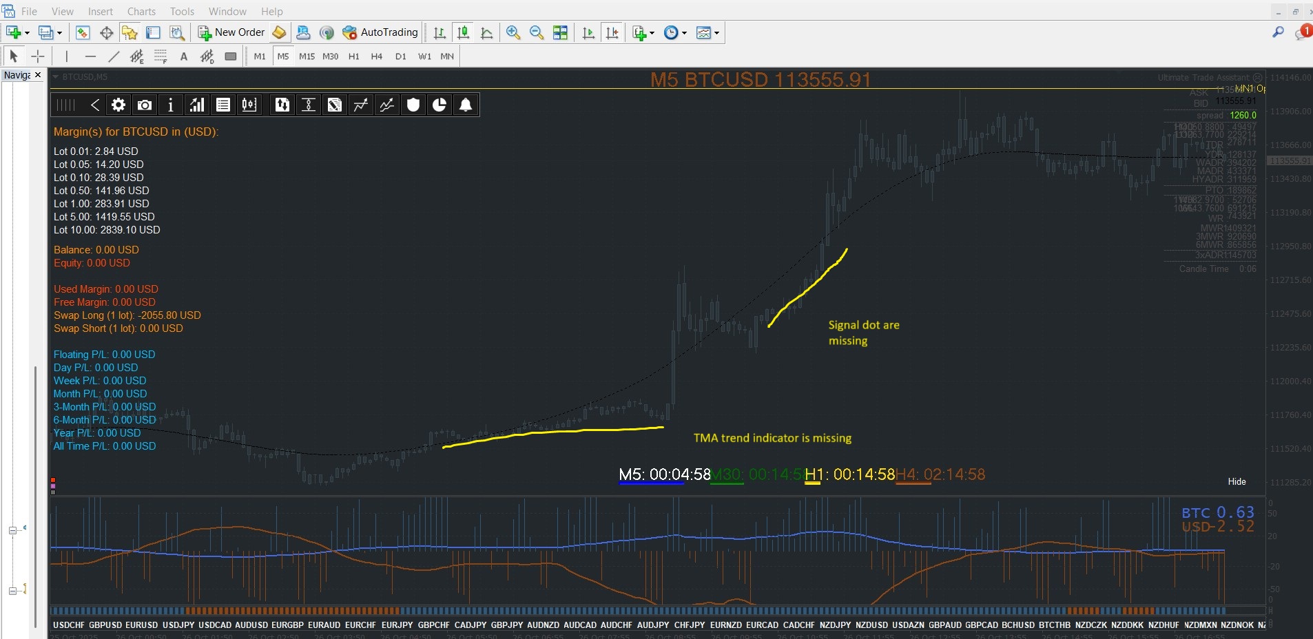 It looks like it has been switched off. The button for the indicator is the grey button on the bottom left of the chart. Click it to toggle the indicator.GirlyFX wrote: Mon Oct 27, 2025 5:02 am Thank you Mr. Beatlemania for sharing this awesome masterpiece with everyone, I am New to this community of Traders, helping new traders (Like me)...