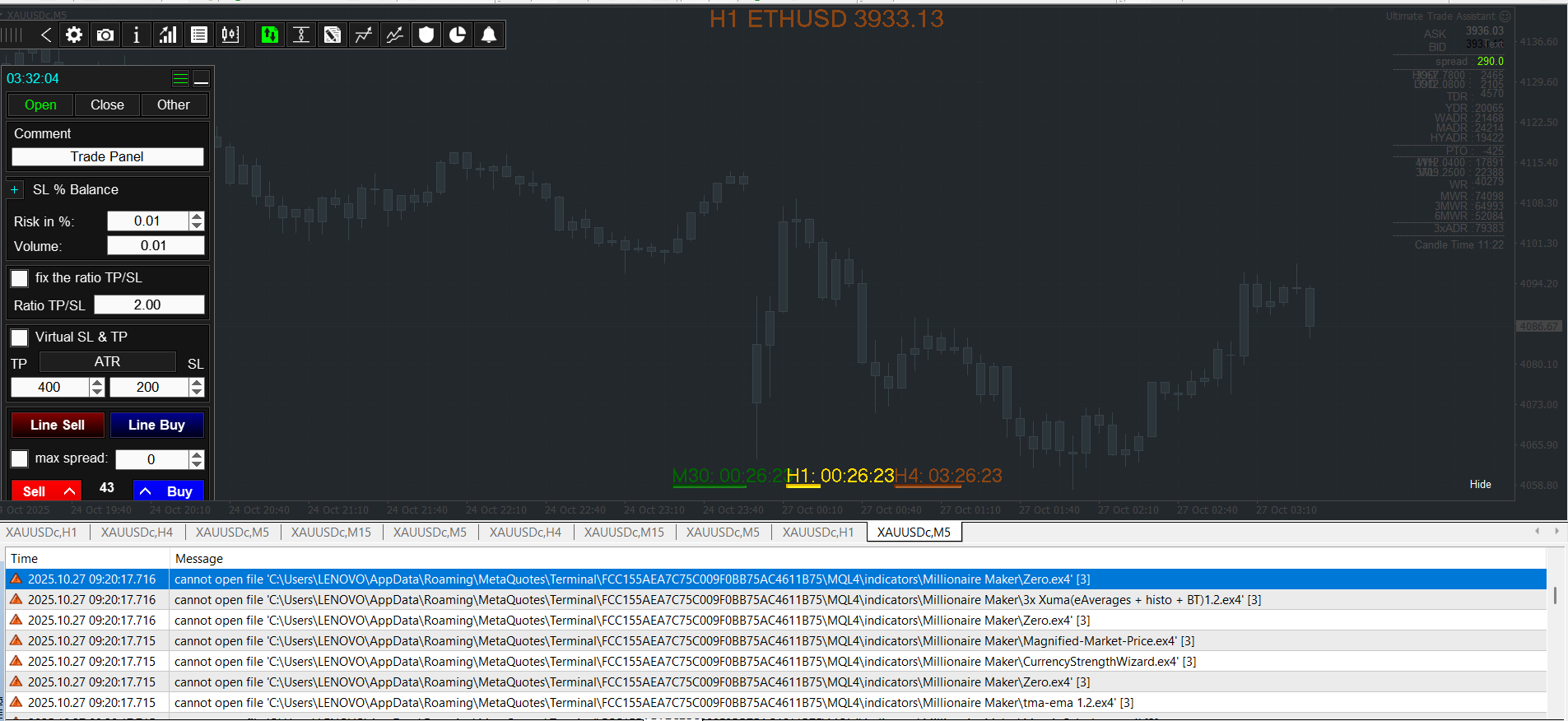 I have downloaded "Millionaire Maker" as instructed by you in the post. however, there are some elements missing on my trading screen, I have attached the screenshot if you or anyone can help to solve this issue.