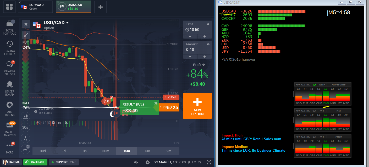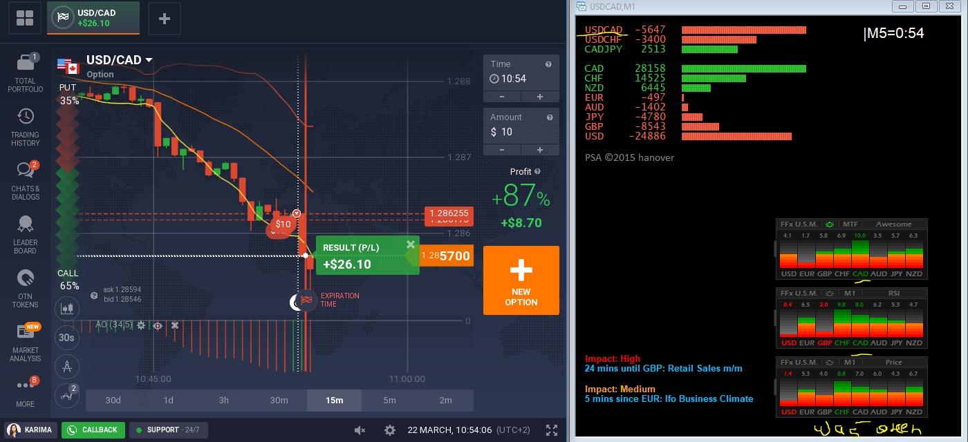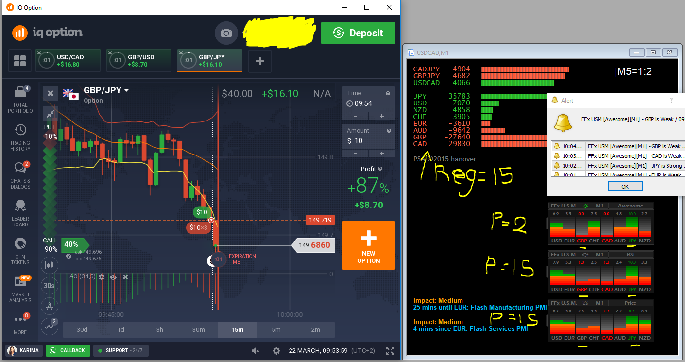 And if I understood you correctly you go into a 1 minute call as soon as you get an alert if a FFx currency is at 10 or 1 minute put if it alerts 0?
