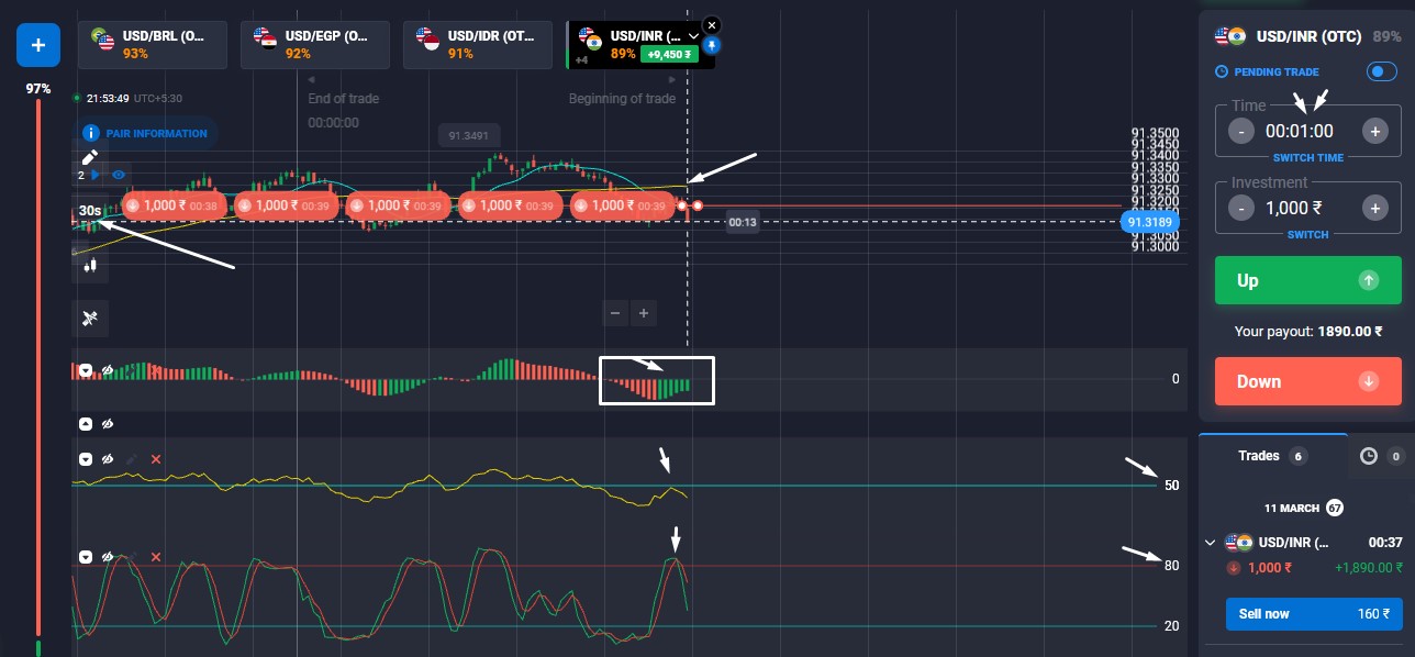 the system works nicely for m1 chart expiry 1m.