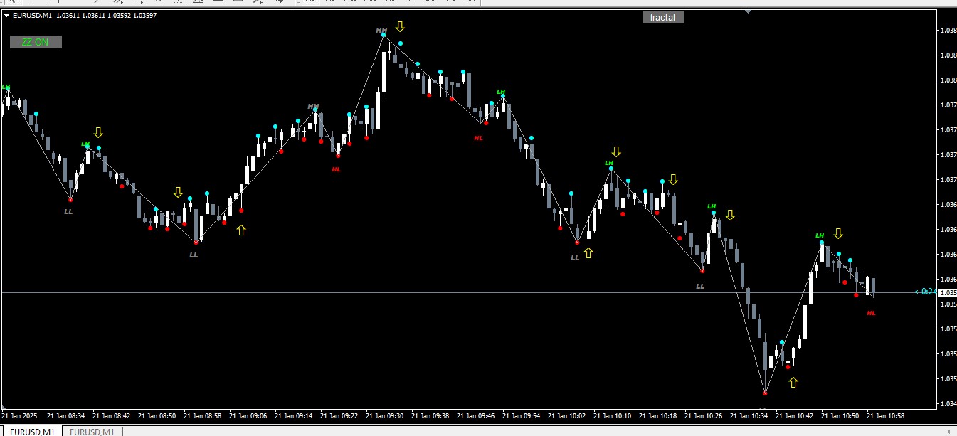 you can use ZIGZAG setting 6/5/3 will bet LH & HL , just follow that breakout