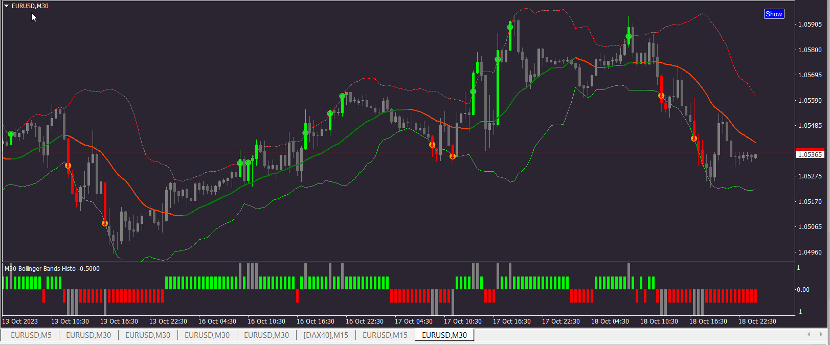 2 Or even furthur, a combined mtf BB Histo alert combined with an alert from the Bolliner Band Candles displayed on the chart??