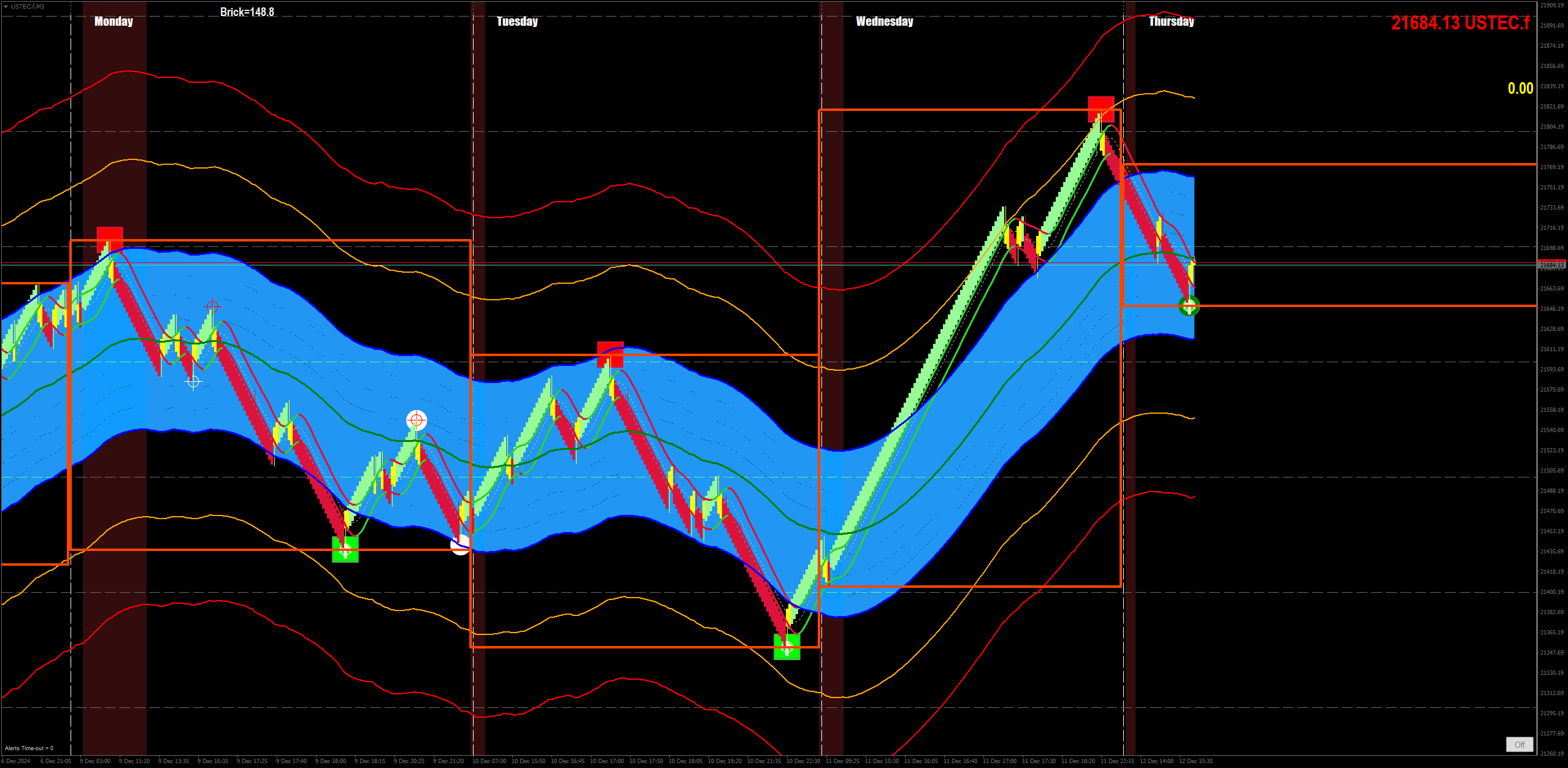 The channel multipliers are contingent upon the specific instrument being traded, necessitating adjustments and fine-tuning for each individual asset. For instance, multipliers of 3.1, 9.1, and 18 appear to be effective for trading the Nasdaq.