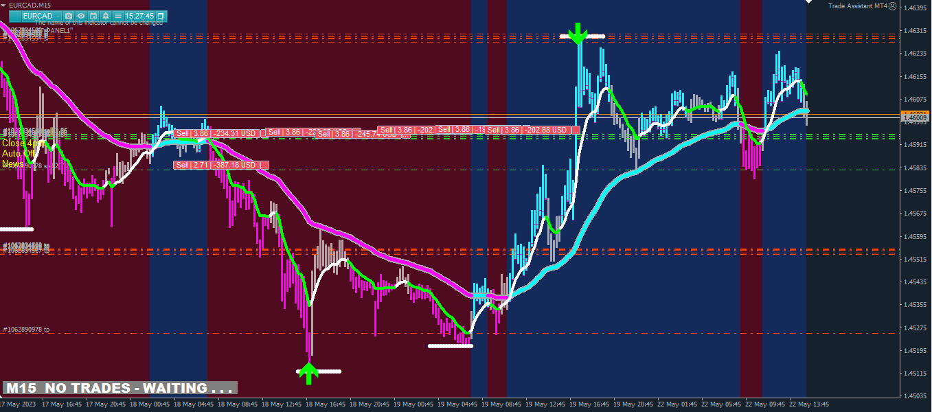 And trensignal indicator only paints blue arrows on live (does paint purple arrows when attached to chart, but no more.)