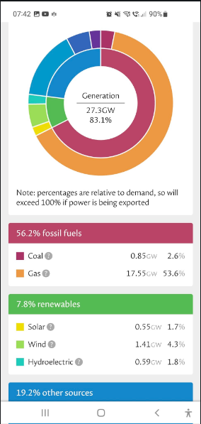 Currently non biomass renewables are only using 7% of capacity. Due to high cloud cover and little wind.