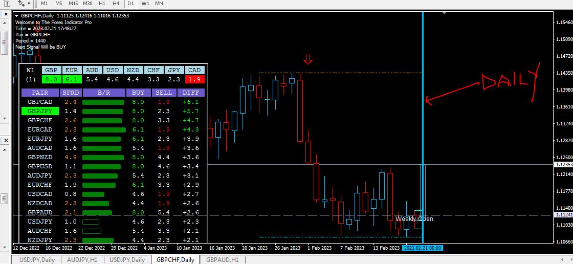 FLICKERS wrote: Fri Feb 17, 2023 6:11 am Hello great coders i need a single stable vertical line with alert that will not disappear on daily and weekly candle so that if i change to smaller time frames the line will still be there on that daily candle opening on lower time frame like 4hrs, if the candle is green the vertical line should be green and the alert will read BUY same goes for SELL scenario, i downloaded one by mladen but its not what i want. Many times if i draw it and change to another time frame it will just disappear please assist me.Rgds