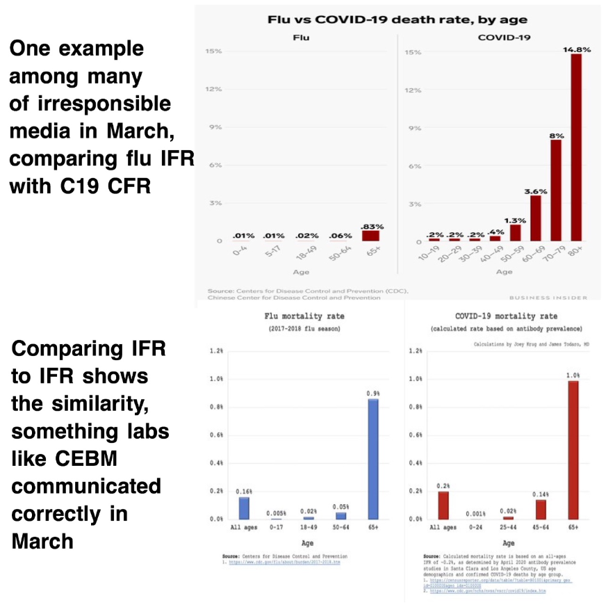 1/ Confuse the Infection fatality rate and the Case fatality rate to swap Covid for Flu.