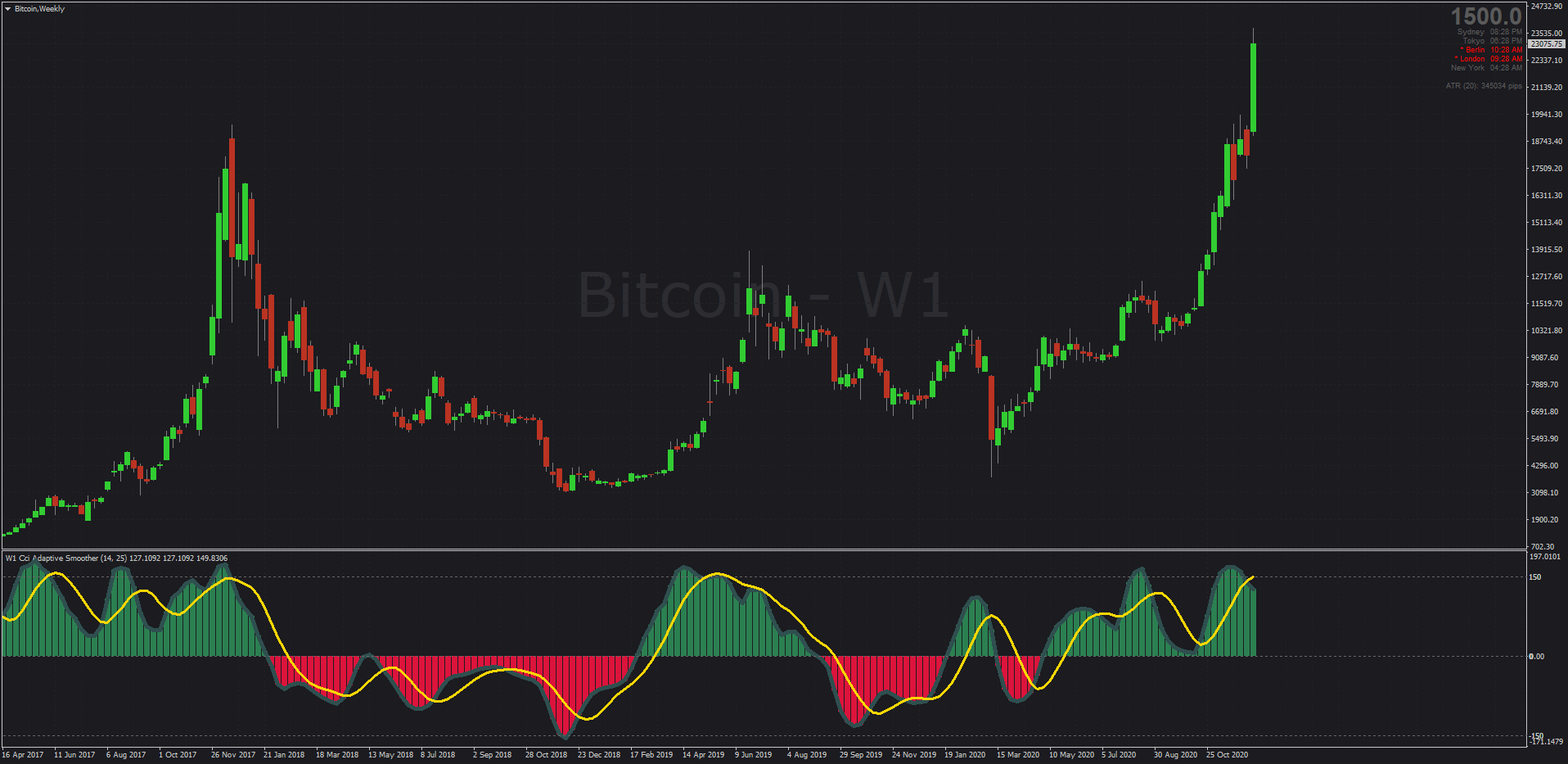 The CCI "Adaptive Smoother" is a competent tool for gauging trends in Forex & Futures, but can also be used for long-term Crypto trading using it's MTF mode. Mrtools' update see this non-repainting code now equipped with Signal Line alerts & Arrows: viewtopic.php?p=1295424931#p1295424931