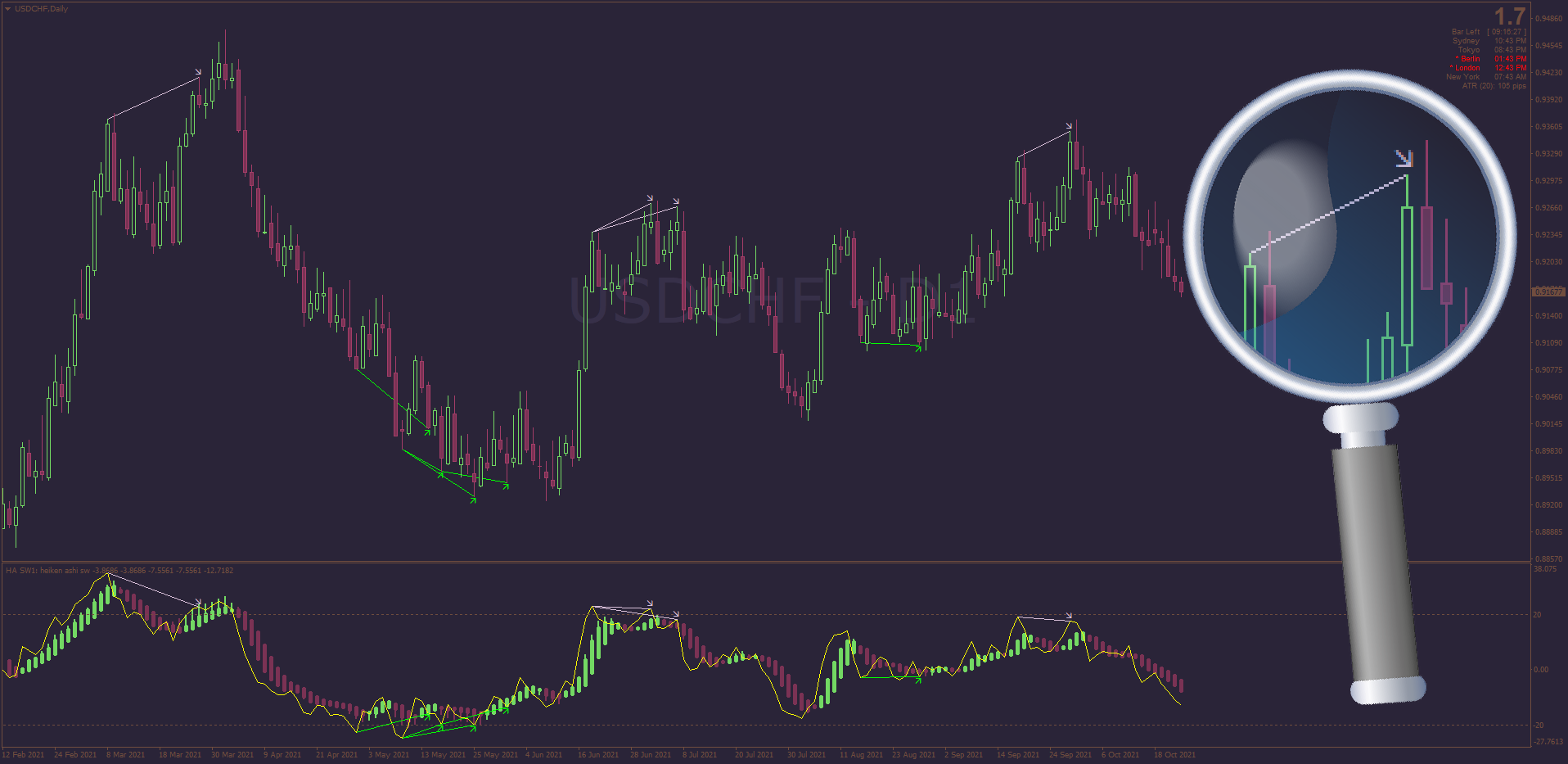 The Heiken Ashi RSI coded by Mrtools is becoming one of the most appraised indicators for trend trading. The latest update sees this non-repainting code equipped with AHTF MTF + Alerts & further code optimization. Be sure to download it, here: viewtopic.php?p=1295448243#p1295448243