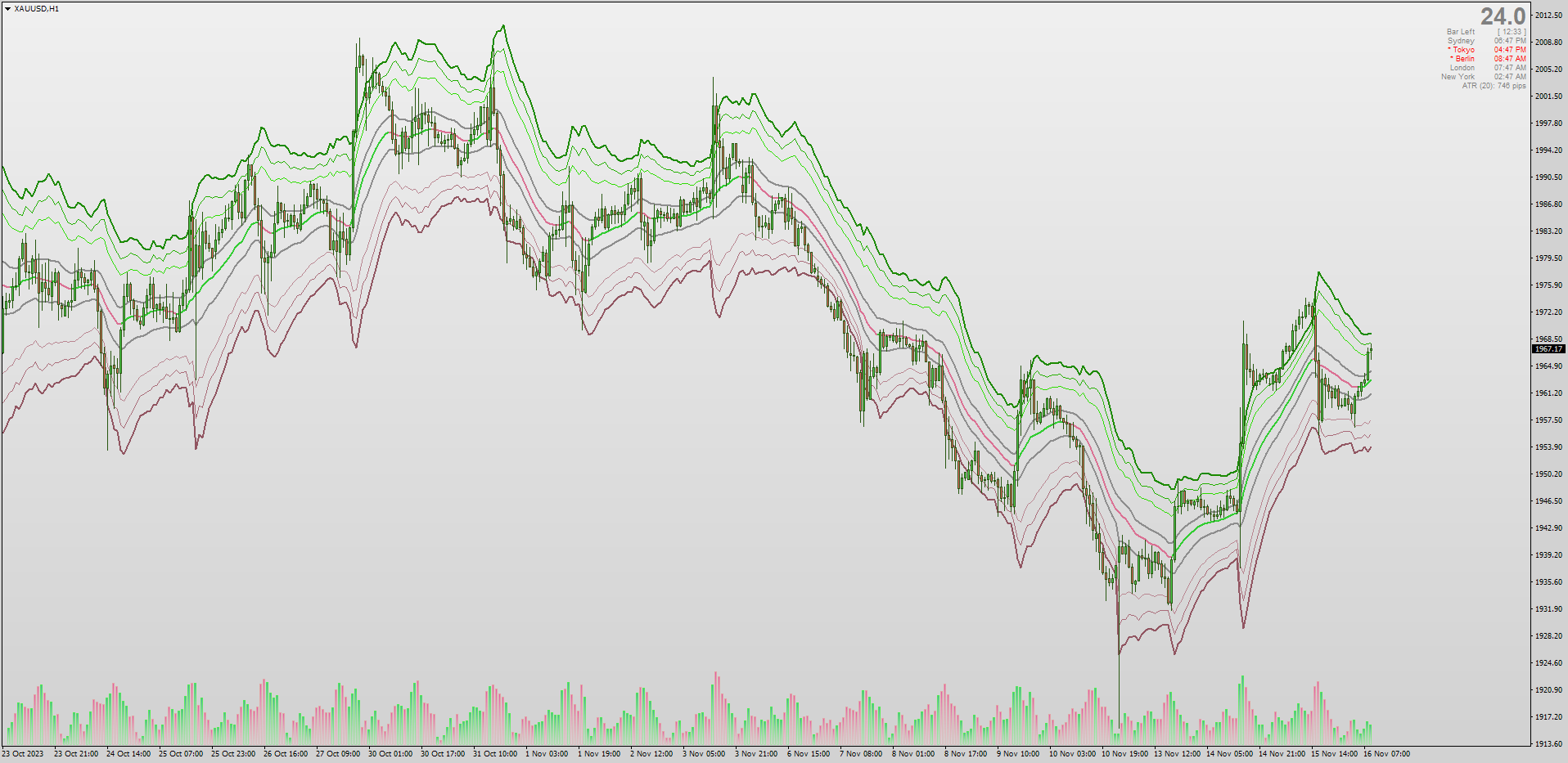 This standalone version of the prominent G-Channel indicator has had it's High/Low bands swapped w/ ATR & ADR. Requested by member Rob & published by Mrtools, this reformed G-Channel is easier to use as a dynamic support & resistance on all timeframes: post1295528229.html#p1295528229