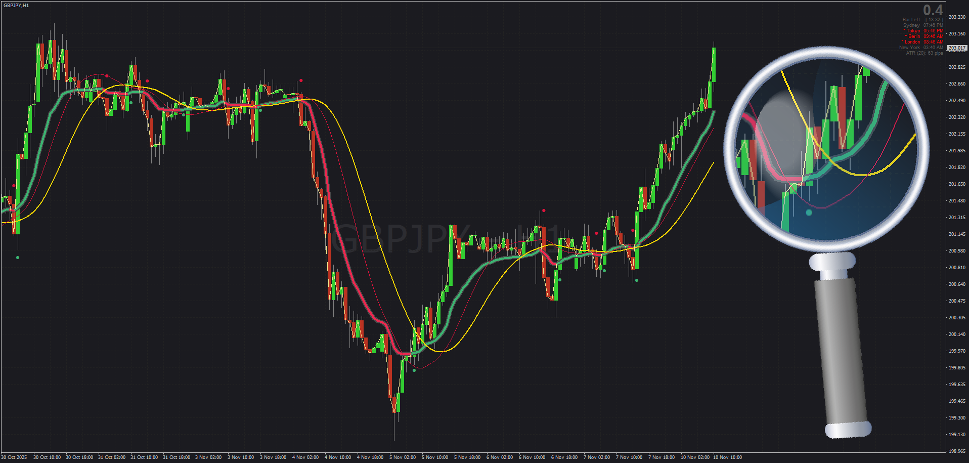 Banzai's new educational setup introduces the "Neon" Moving Average as a standalone MA, complete with MT4 template for intraday trading. Traders can apply this specific 20 SMA setup on M5 charts to time entries in alignment with the Daily chart's trend: post1295575623.html#p1295575623