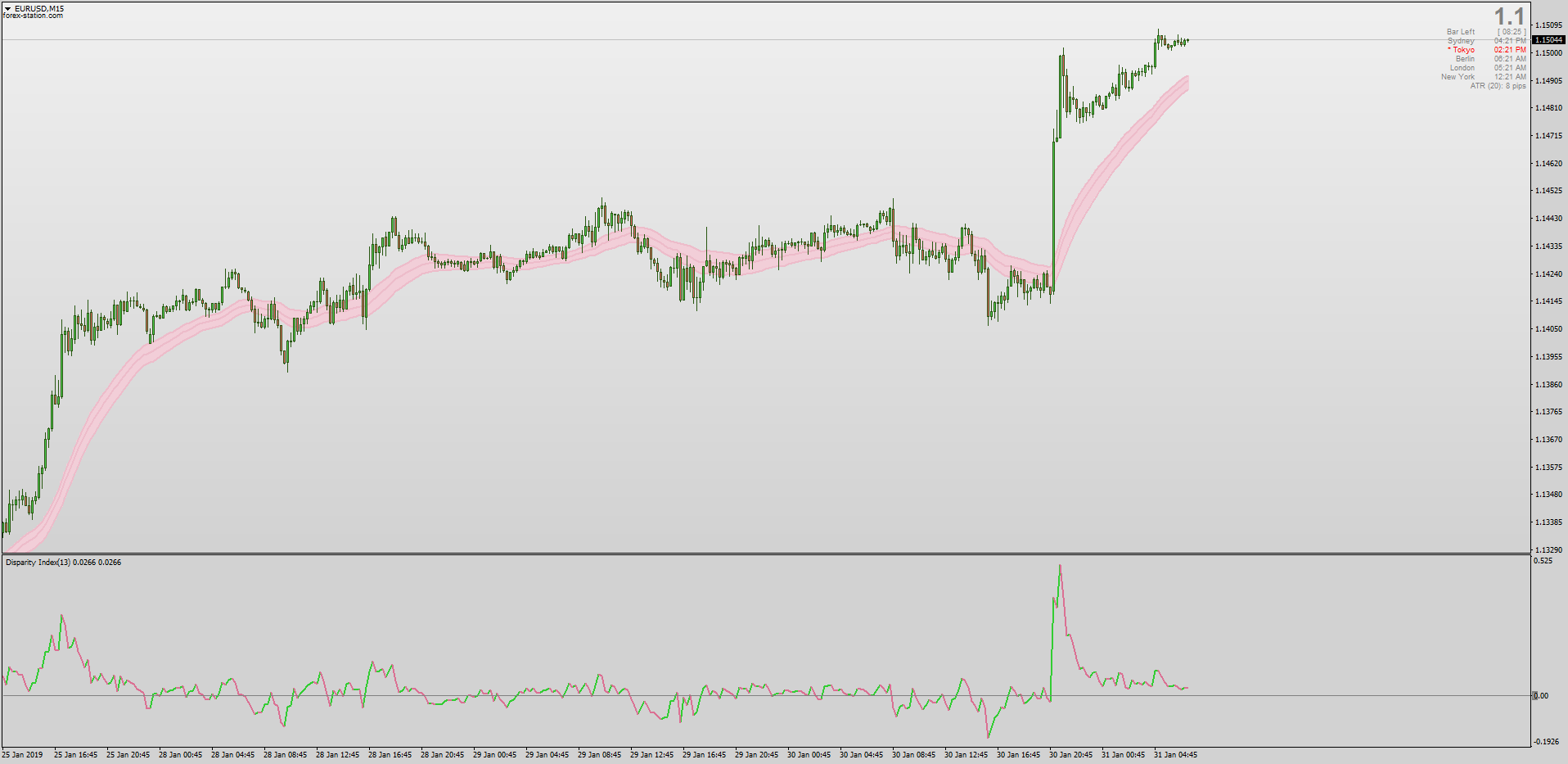 The Disparity Index was designed for scalping retracements with the idea that price always reverts to the mean, like a "coil returns to its initial position". As pictured, retracements back to a 34 EMA channel can easily be traded. Posted by Mrtools: viewtopic.php?p=1295385349#p1295385349