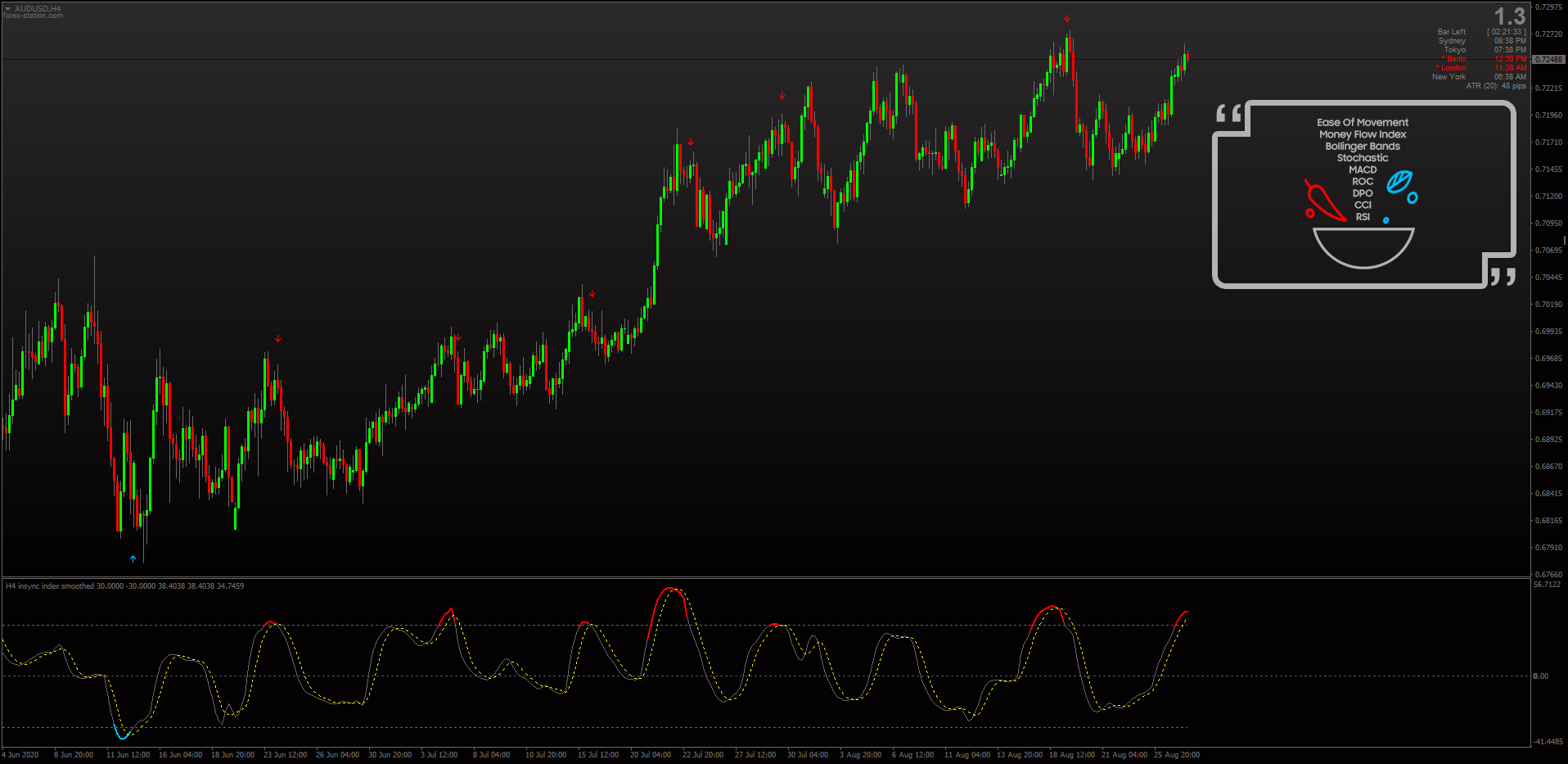 Norman North's Insync Index is a "master" oscillator which combines over 9+ technical indicators into one & Mrtools' non-repainting version now features a range of options for counter-trend trading such as "Arrows on OB/OS Exit" & much more. Download: viewtopic.php?p=1295417779#p1295417779