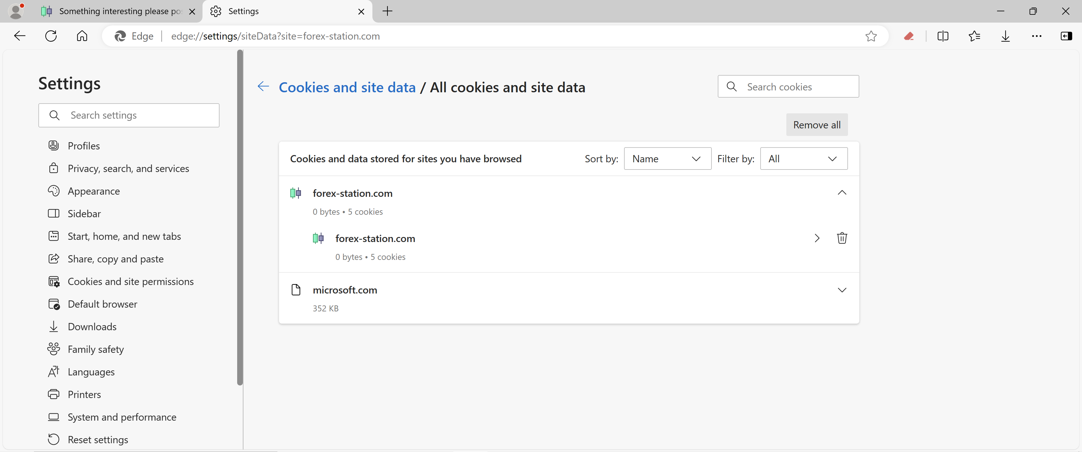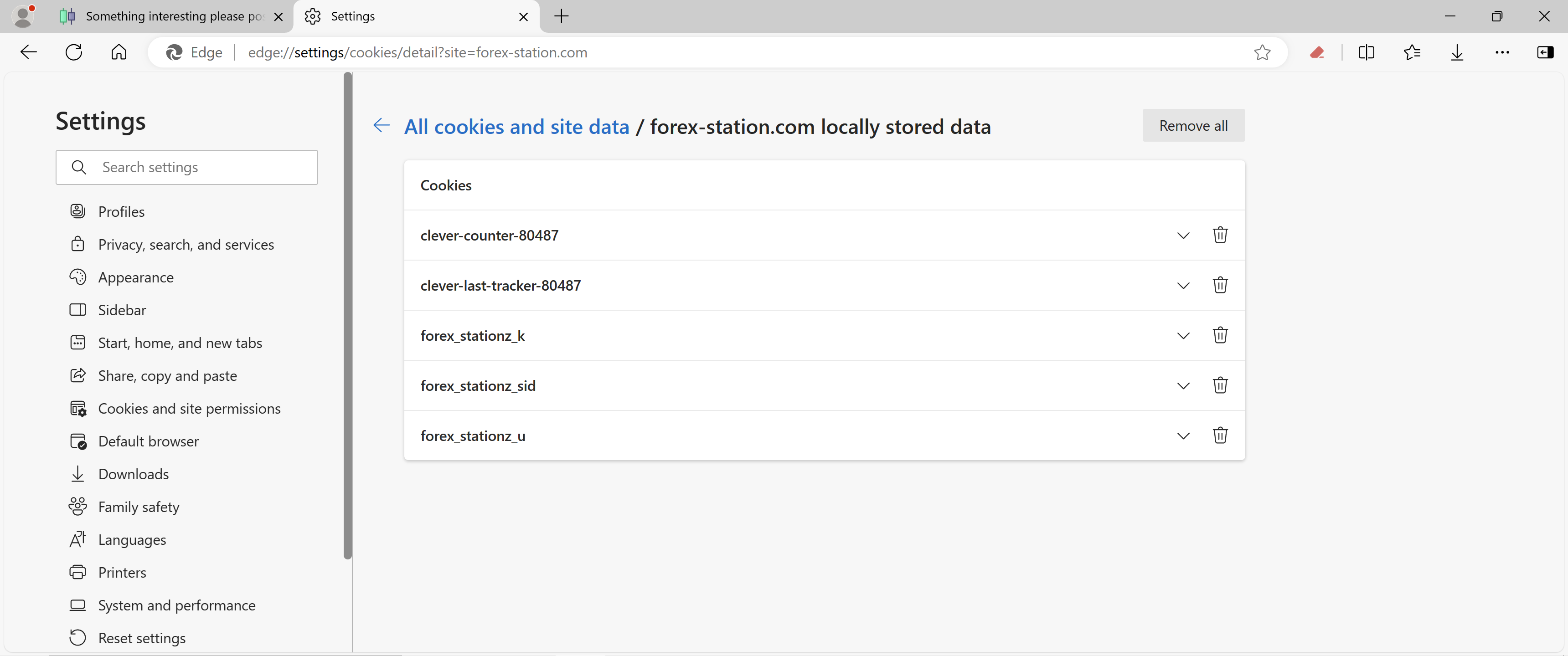 edge://settings/clearBrowserData and go to delete specific cookies with some date references.