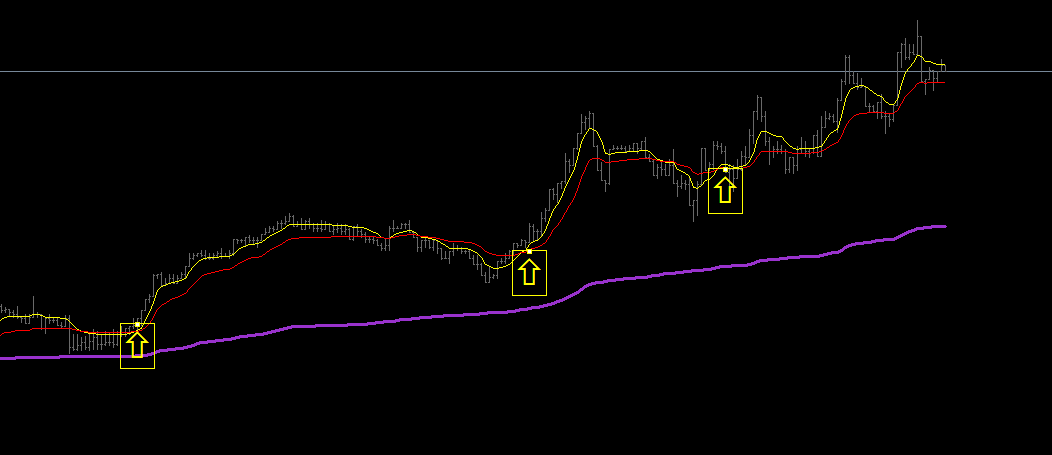 I check to trade if price cross both lines. (not trade by crossing lines) in 5 min TF.