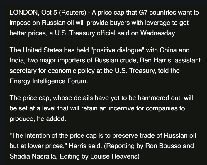They think they can get China and India onboard to cap prices instead of China and India buying Russian oil cheap and selling back to the EU for a huge profit like they do with gas.
