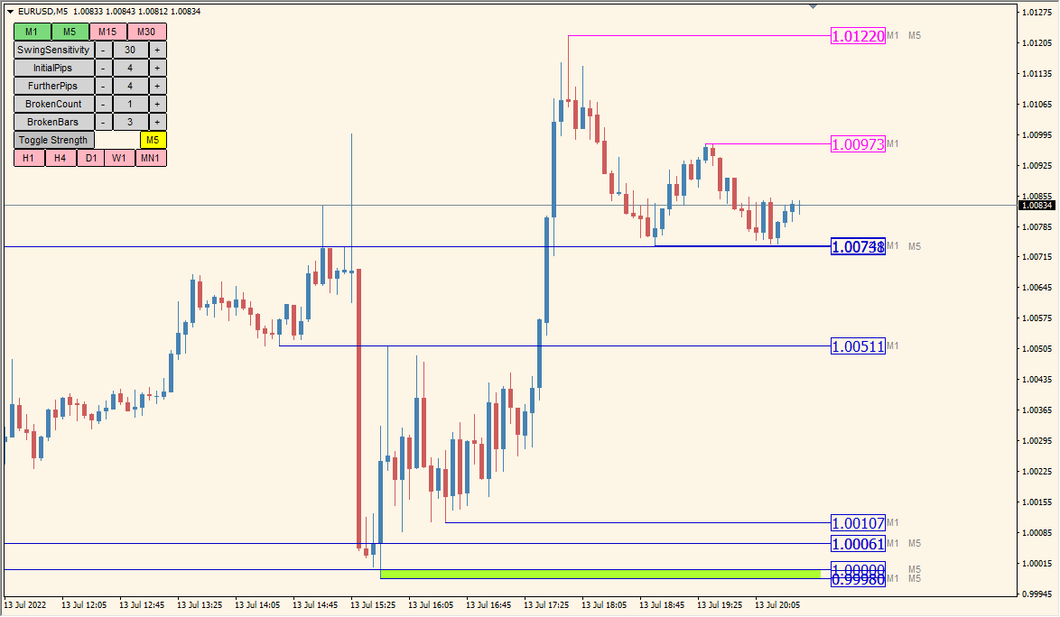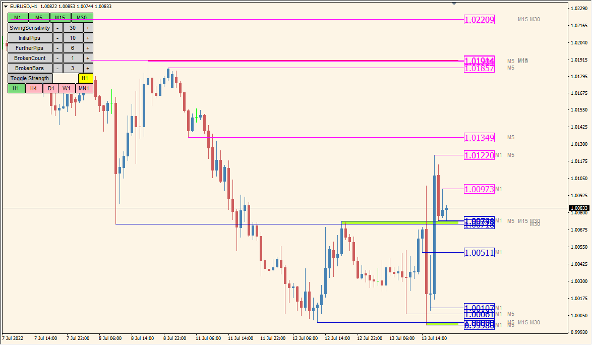 In addition to the zone, it also displays the 4 daily prices (high, low, open, close), so it is convenient to know the line that you are conscious of on the day.