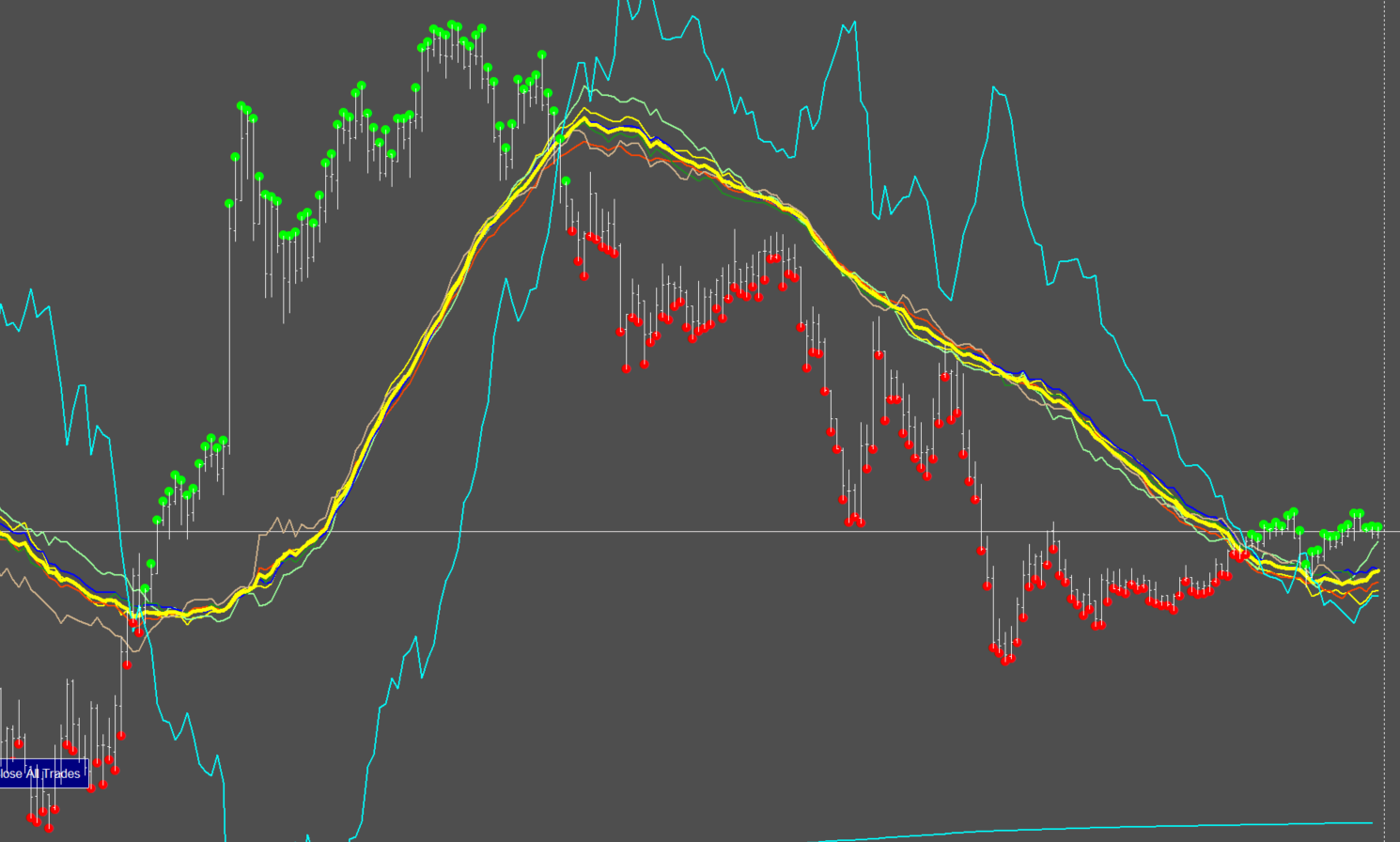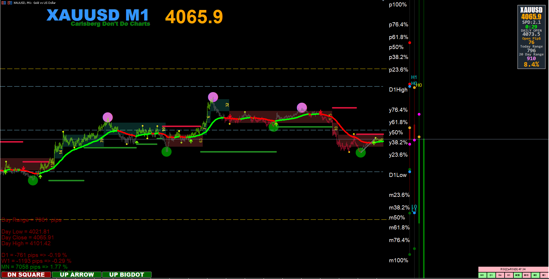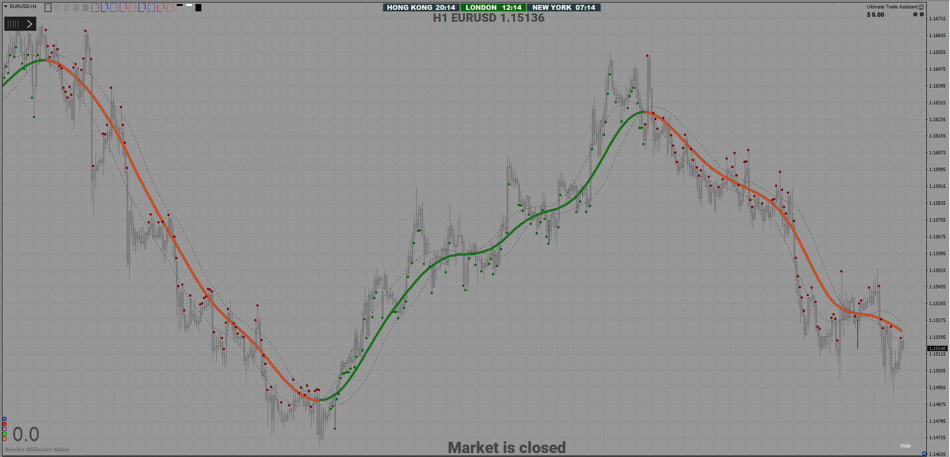 You can see first overbought, red vertical line, and later oversold, green vertical line,... and they are at the same level...what, what...so just take those, and money should rolling in.
