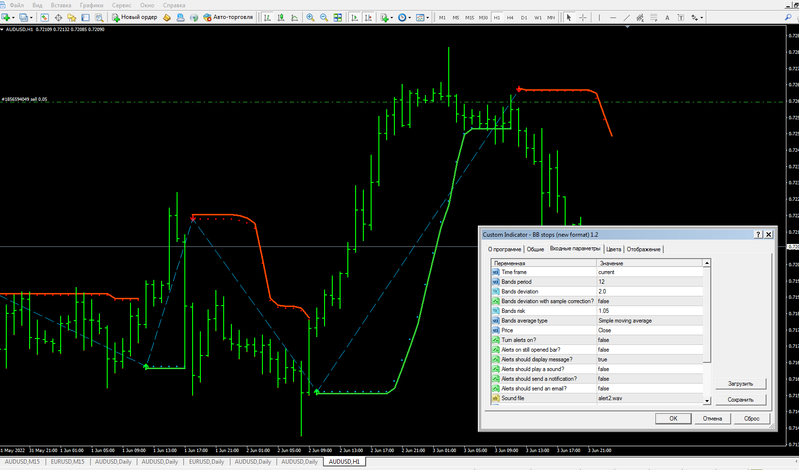 Open short position when the indicator displays a red arrow and a sell alert. The pop-up alert also displays a suitable sell stop. Also, you can use a tighter stop loss by setting it just above the dotted line. If you are not sure about setting your own take profit, simply exit when the indicator posts a buy signal.