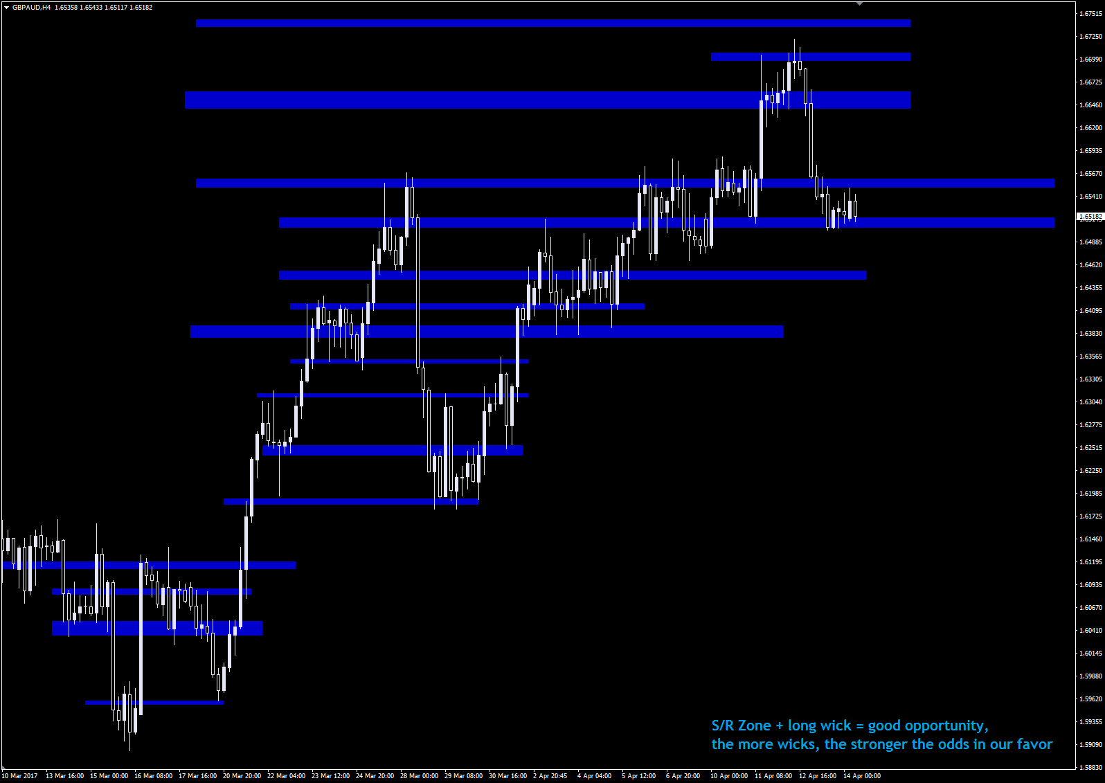 TobiKrelian99 wrote: Fri Apr 14, 2017 9:36 pm Here is my working chart with S/R zones of GBPAUD H4.