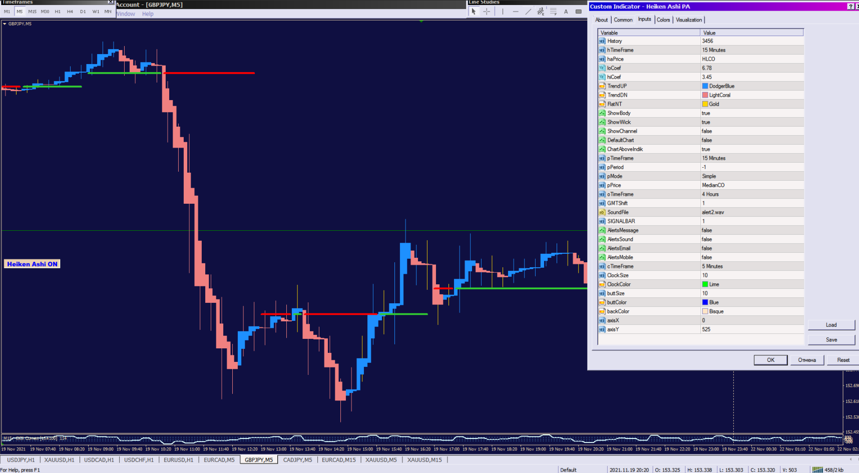This is Hayken Ashi from Price Action. These indicator images were posted by the Tankk coder at the beginning of the week ... written to order from my understanding. Contact him, he wrote that in such a combination is nowhere to be found