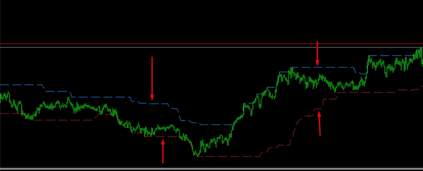 Looks like a Donchian Channel only without the middle line and longer period. It's a default indicator.