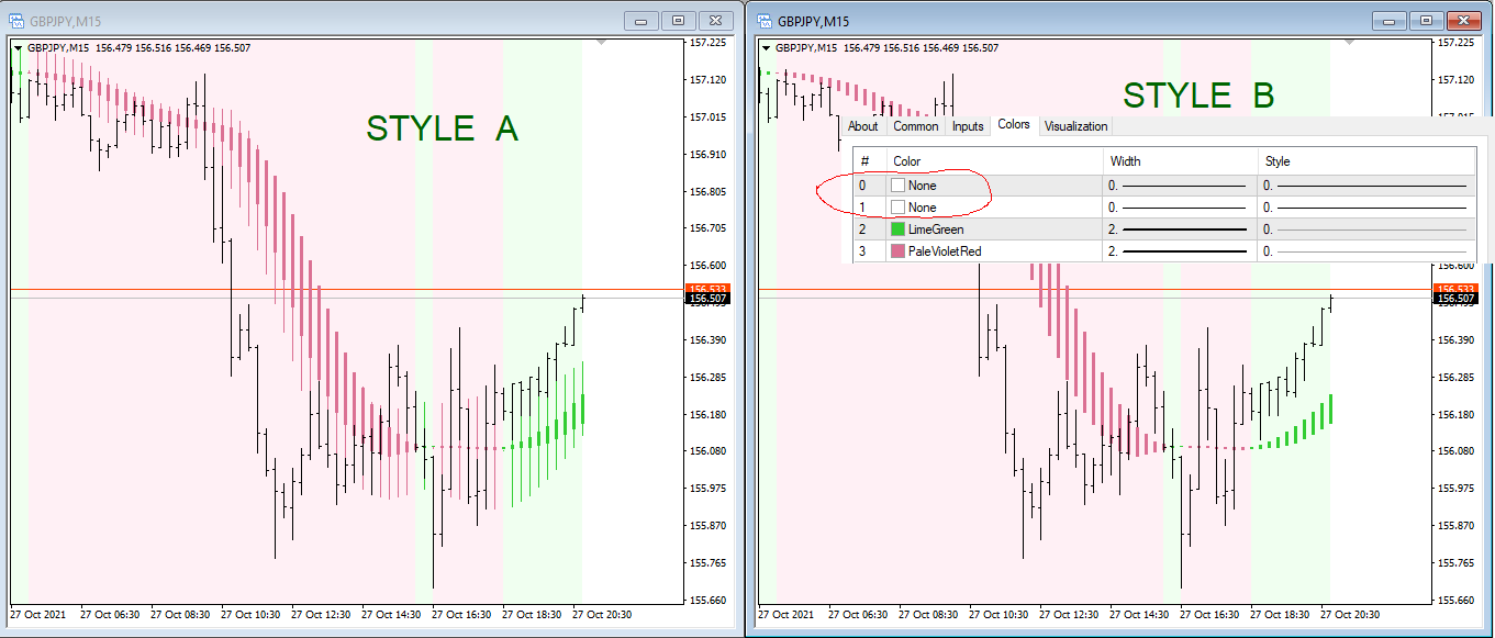 This indicator can draw the green candles if they're in an uptrend and red candles if they're in a downtrend