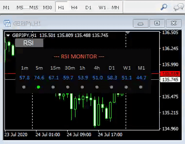AussieBeau wrote: Sat Jul 01, 2017 5:06 pm If you trade with RSI indicator, here is another way to use it. This indicator will draw a small panel that shows all RSI values on all timeframes and will alert you when the price enters the Oversold, Overbought zones.