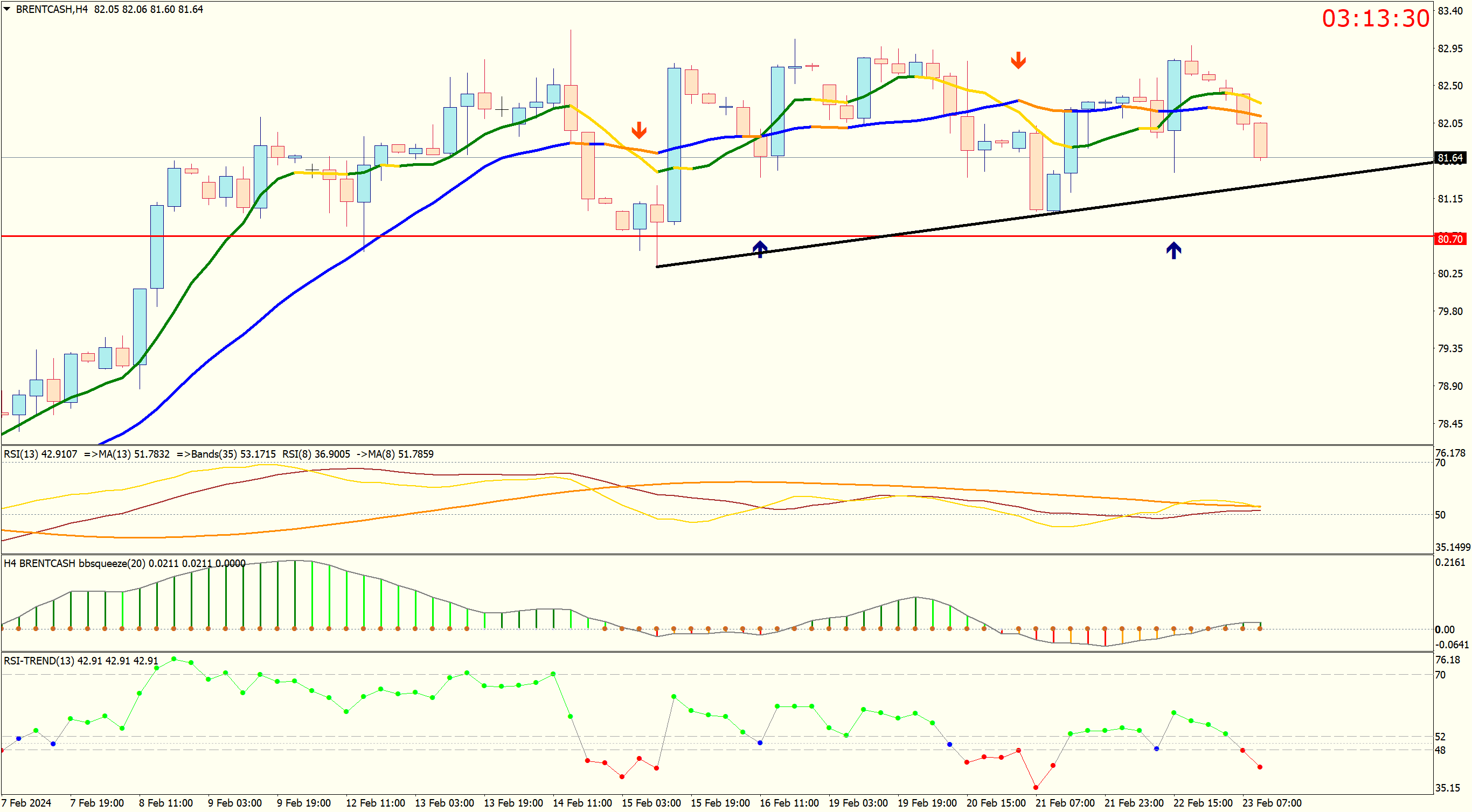 macd & rsi wrote: Wed Feb 21, 2024 6:03 pm Brent Crude Oil : Just based on system trading's alarm , no trend line , no fibo level , .....