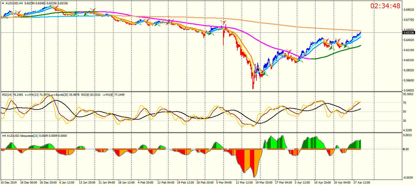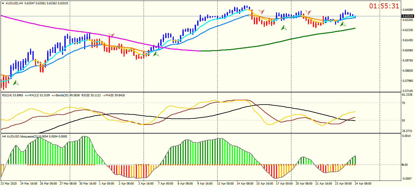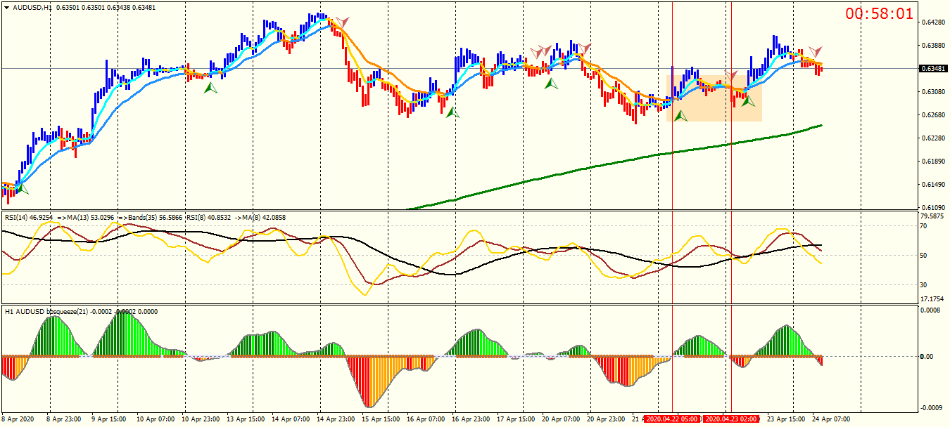 H1 did not show an strong alarm for long or short . Now , I bought it just based on H4 , market at lower time frame is very uncertain .macd & rsi wrote: Wed Apr 22, 2020 4:10 pm Let's take a look at the Australian dollar chart !!