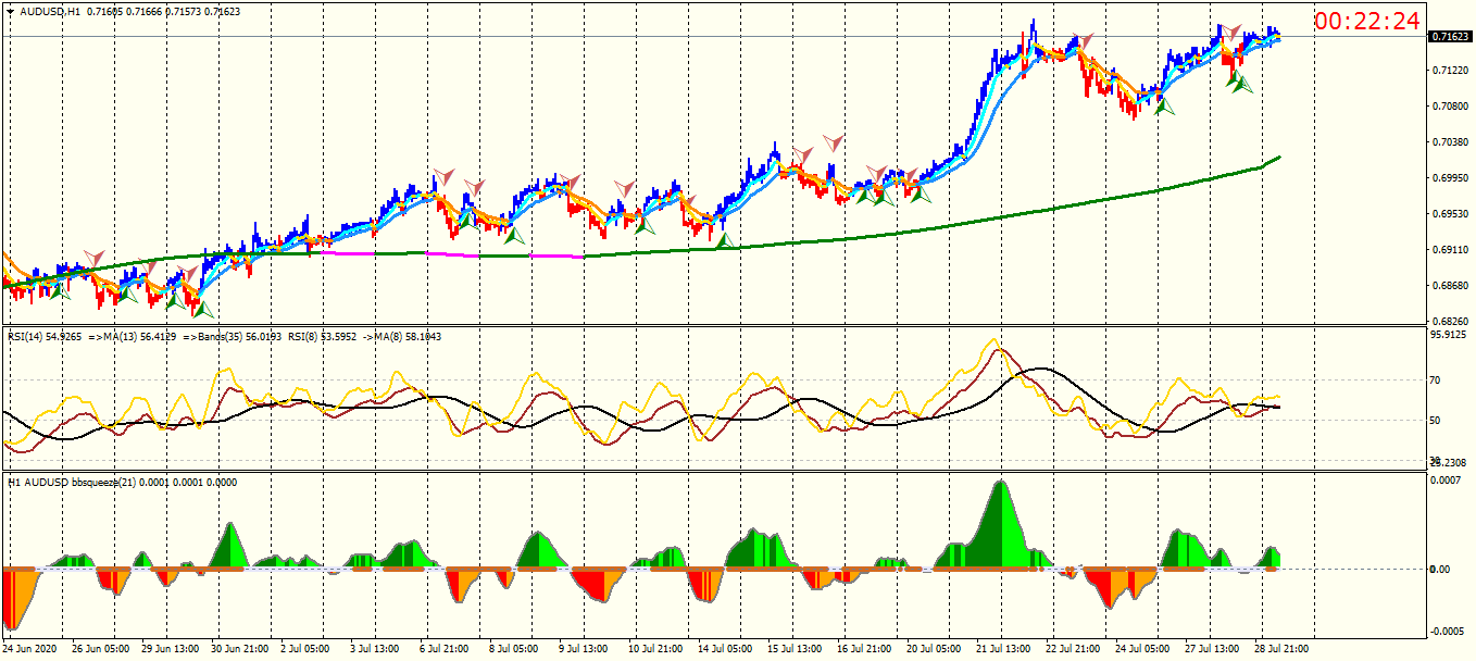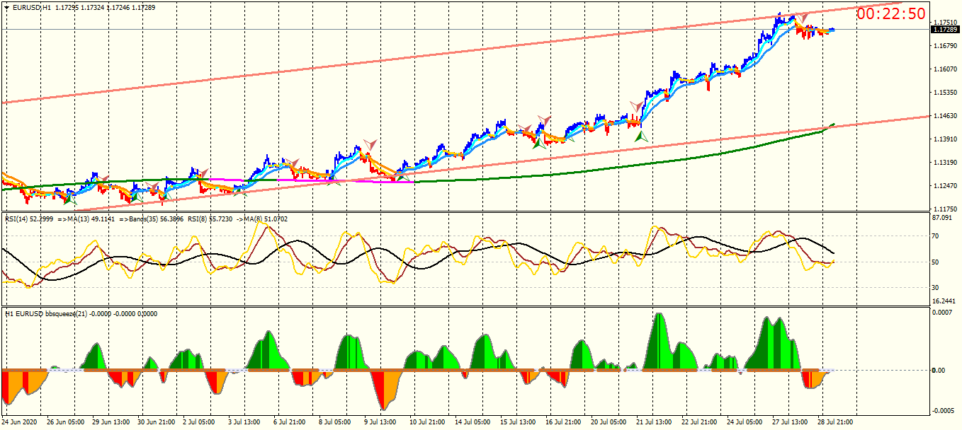 H1 shows a remarkable divergence ,,, so I expect price has a correction to 106.30-106.10 ,, which is 50% fibo level , old support line now changes to resistance area ,, and SMA 21 ,,macd & rsi wrote: Thu Jul 23, 2020 2:16 pm #USD/JPY :