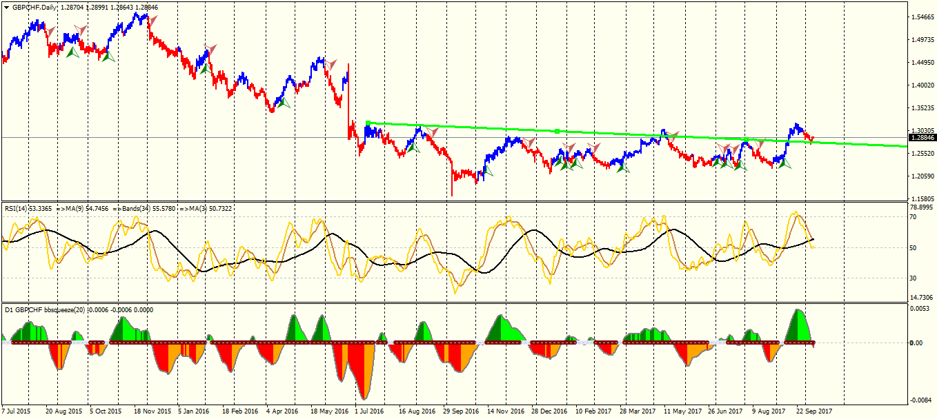 74GBP/CHF : waiting for bbsqueeze gets red , breaking trend line , RSI goes below 50 , and EMA21 crosses EMA 8 for bearish signal .
