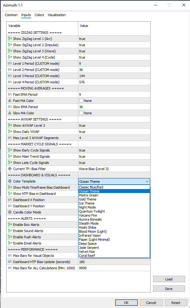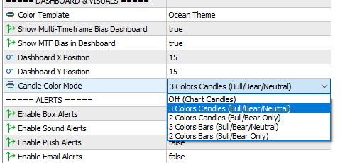 Just open the settings of the Azimuth, and you can switch to Bull/Bearish setup with 2 colors. And/or try a different color template.Lenovo wrote: Fri Dec 05, 2025 12:35 am How can I change the colors of the candles? I have trouble recognizing the neutral from the positive.
