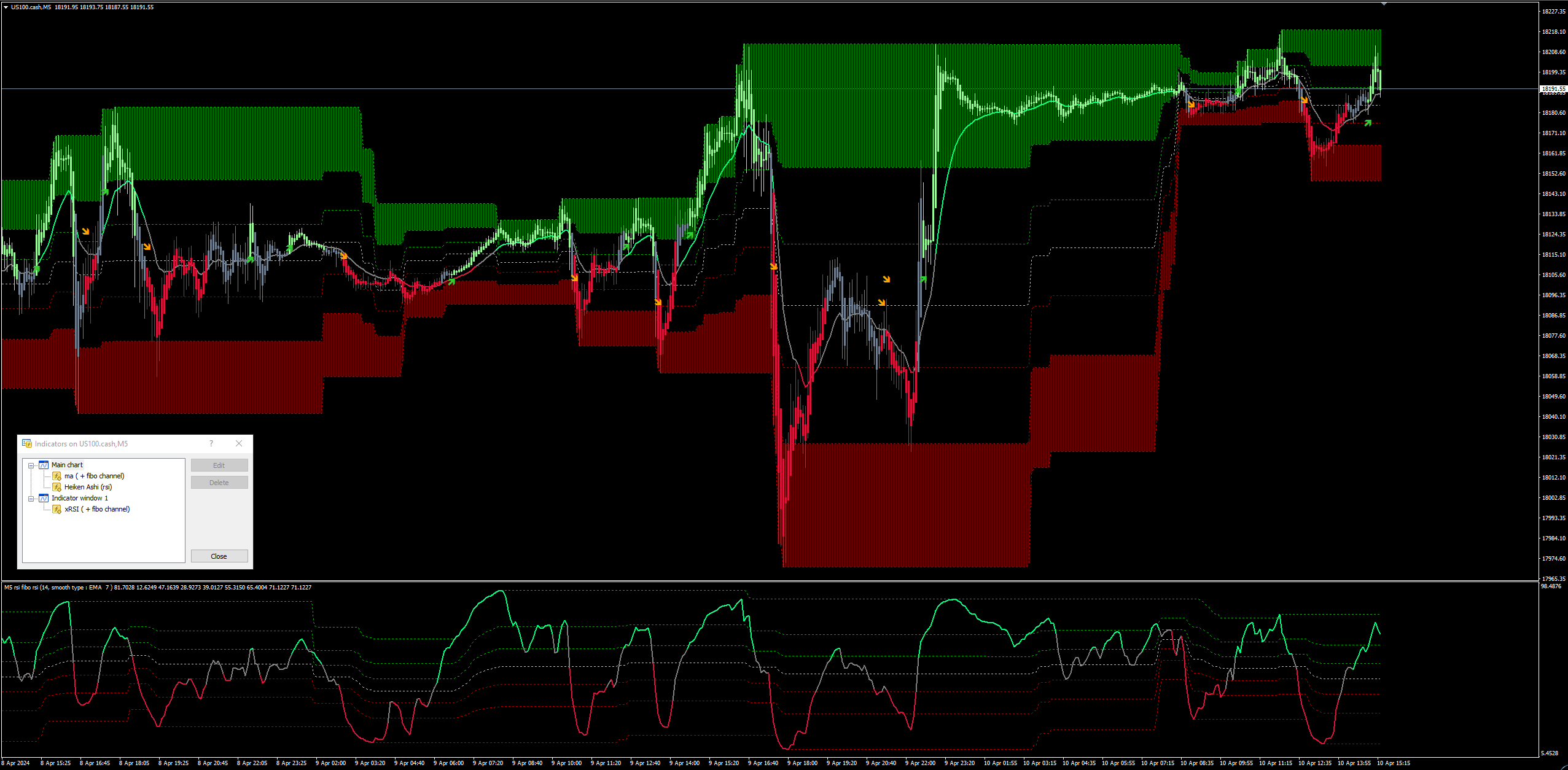 Fibonacci Moving Average Channel with Color Fill Background + Custom Fibonacci Level Options