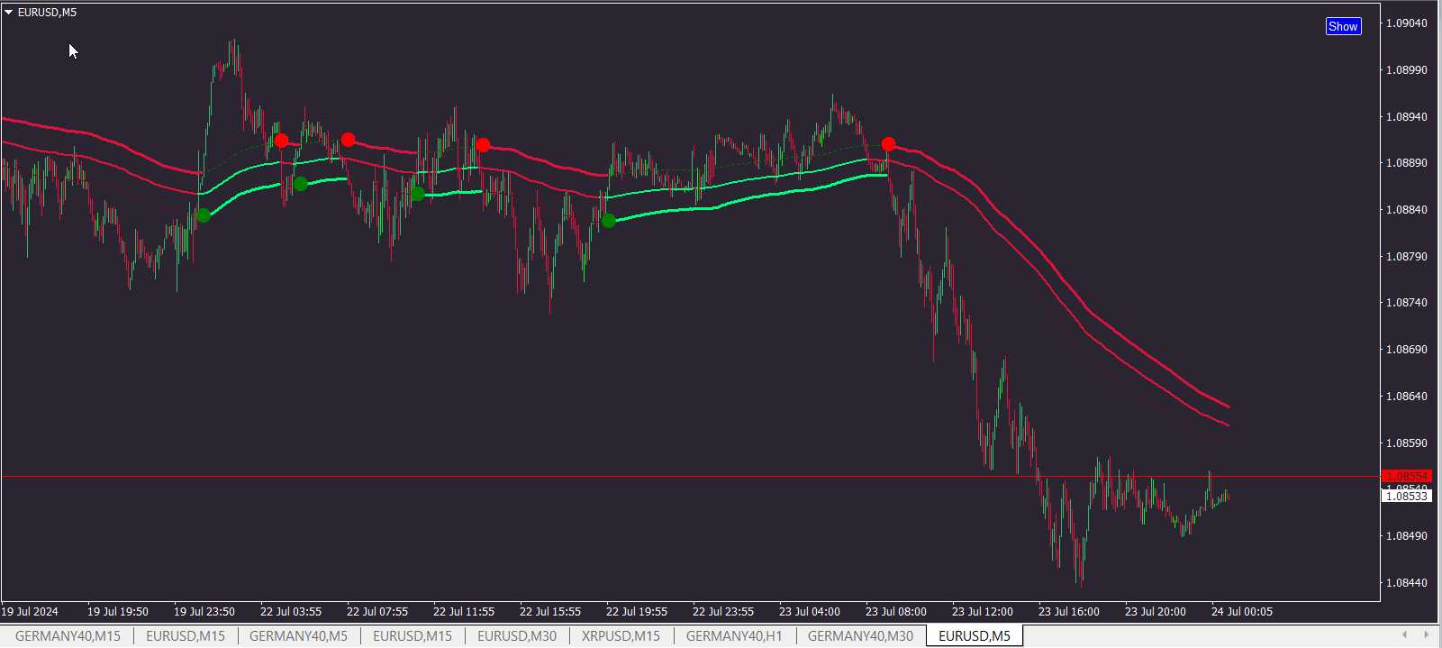 Possibly show/hide channels, center MA, arrows and trend dots.