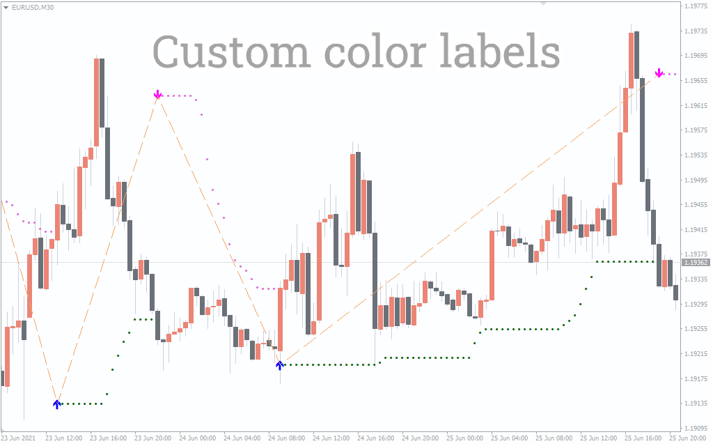 1-The Lucky Reversal indicator for MT4 displays clear signals on the main chart in the form of arrows indicating buy and sell, in blue and red, as well as wavy indicating the direction of the trend. In addition, a white square is displayed on the chart, which indicates potential reversals before they are confirmed.