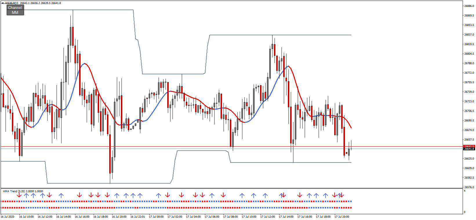 (just an example: slow: SMA 12, double smooth (directional bias); fast: HMA 5 (entry))