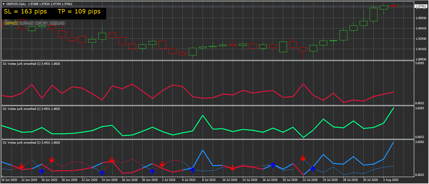 If you - like you suggest - use the JVB-line-MA-line-cross there are times when price continues in the former direction and you sometimes take considerable losses (last climax sort of thing) plus you exit trades early because of pullbacks.