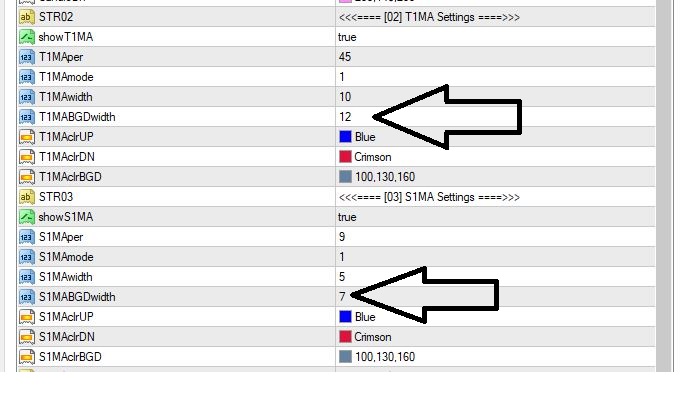 2) Please Add Param / Option : Trend BgdWidth : ______ ( i.e shadow Line width ) of 1st Coloured MA/Coloured Trend Line *